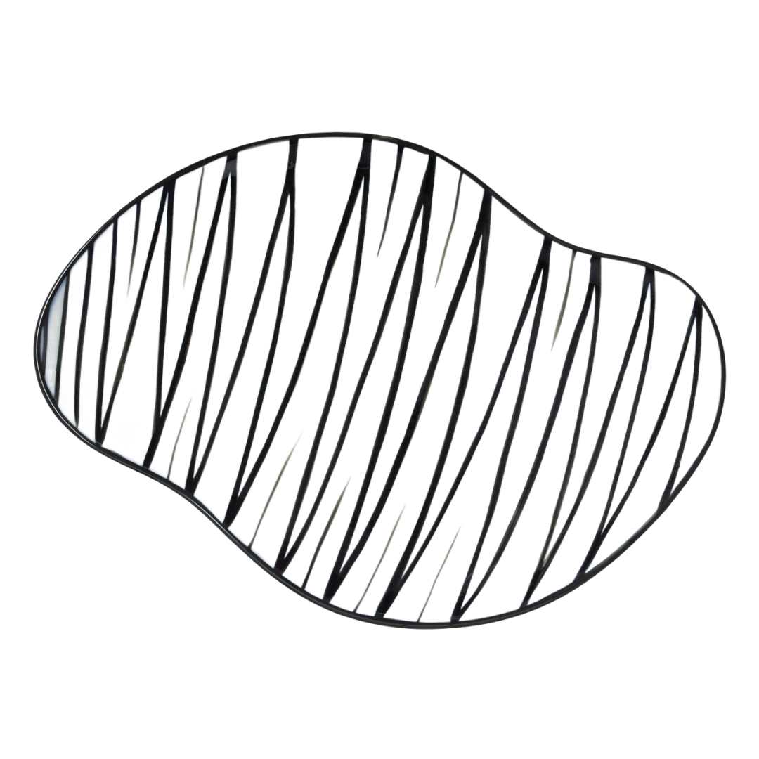 Handgerður svartur Skýjadiskur úr postulíni, sem þolir vel uppþvottavélar og örbylgjuofna. Diskurinn er 24 x 17cm að stærð. | Skýjadiskur - Svarta Línan - Vetur