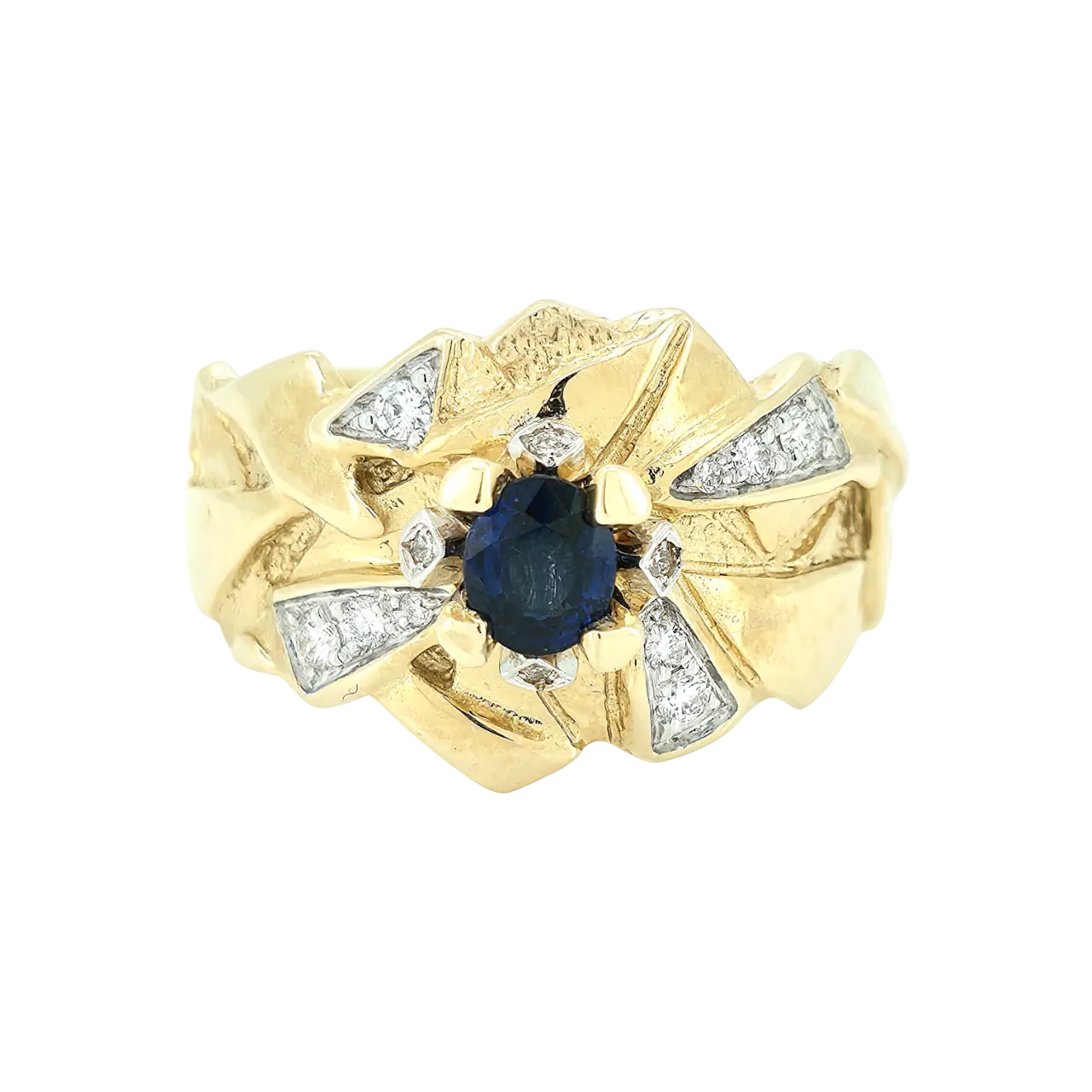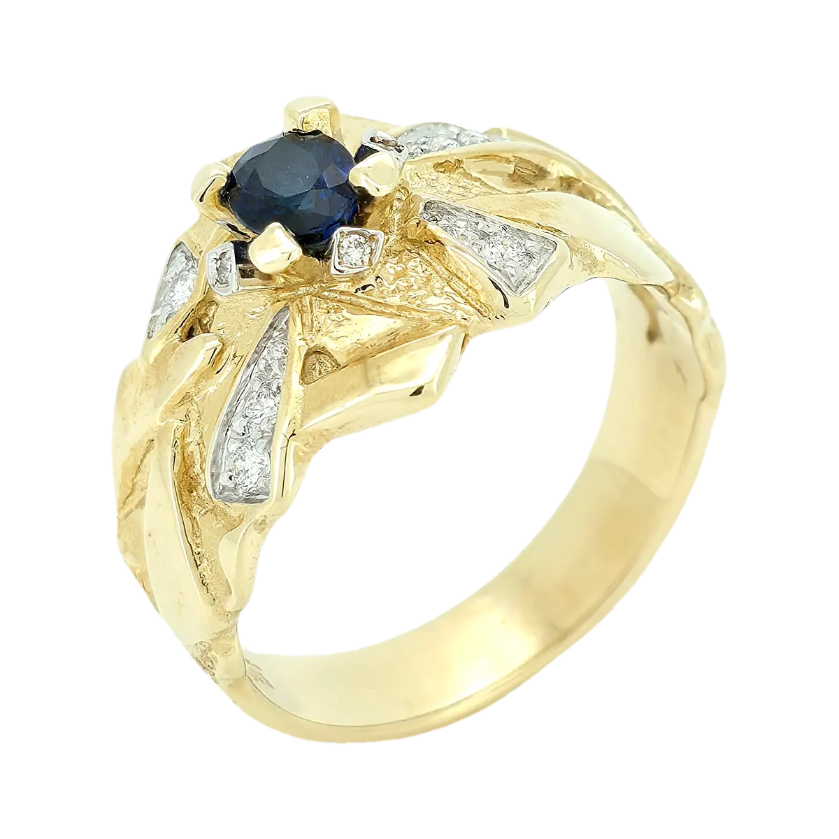 Efni hrings: 14kt gull Steinar: 14 demantar - 0,16ct - Top Wesselton VS | 1 Ceylon safír - 0,54ct