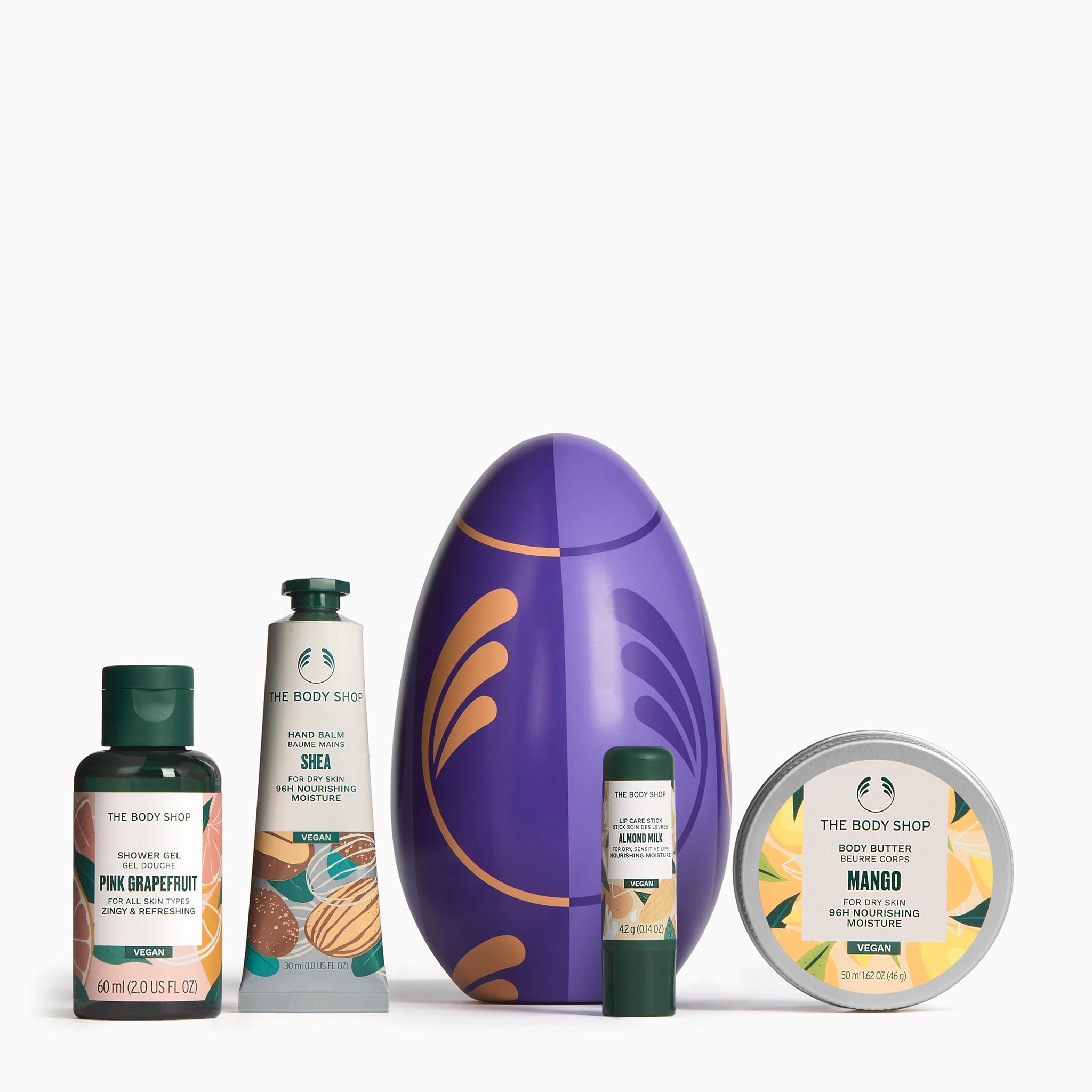 Gullfallegt páskaegg fyrir þau sem vilja dekra við kroppinn án þess að sykur komi þar við sögu.  Dásamlega frískandi Pink Grapefruit sturtusápa, Mango body butter fyrir líkamann,  Shea ... Sjá nánar