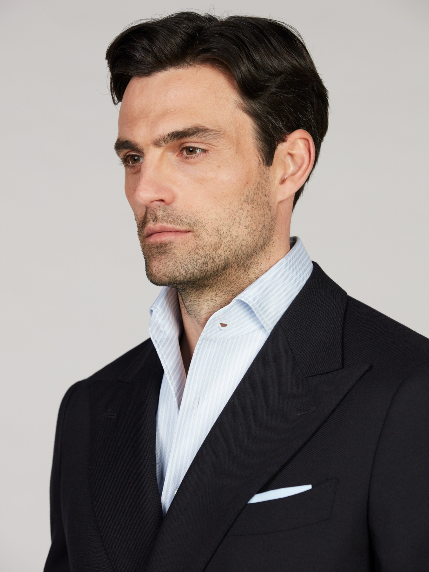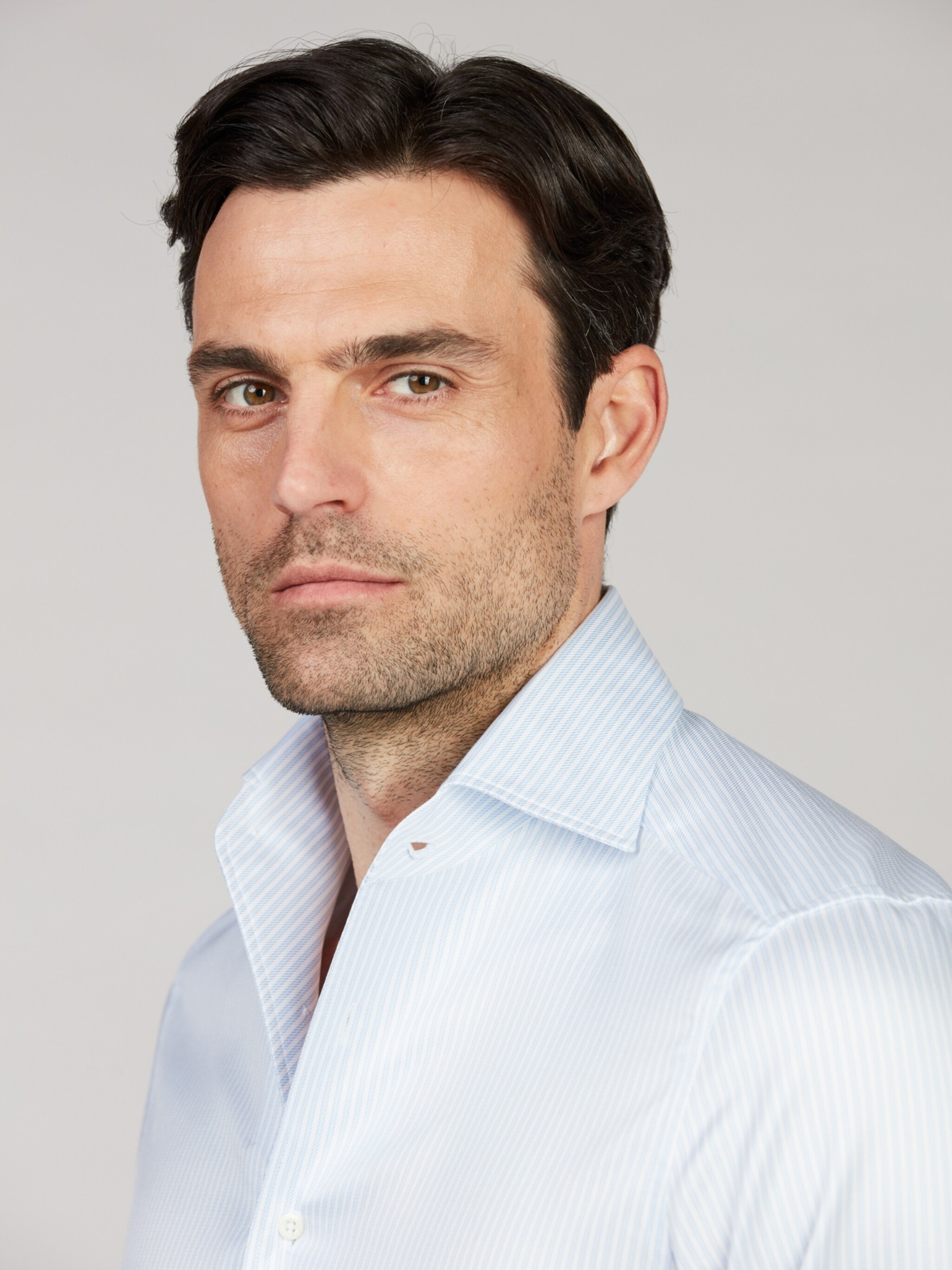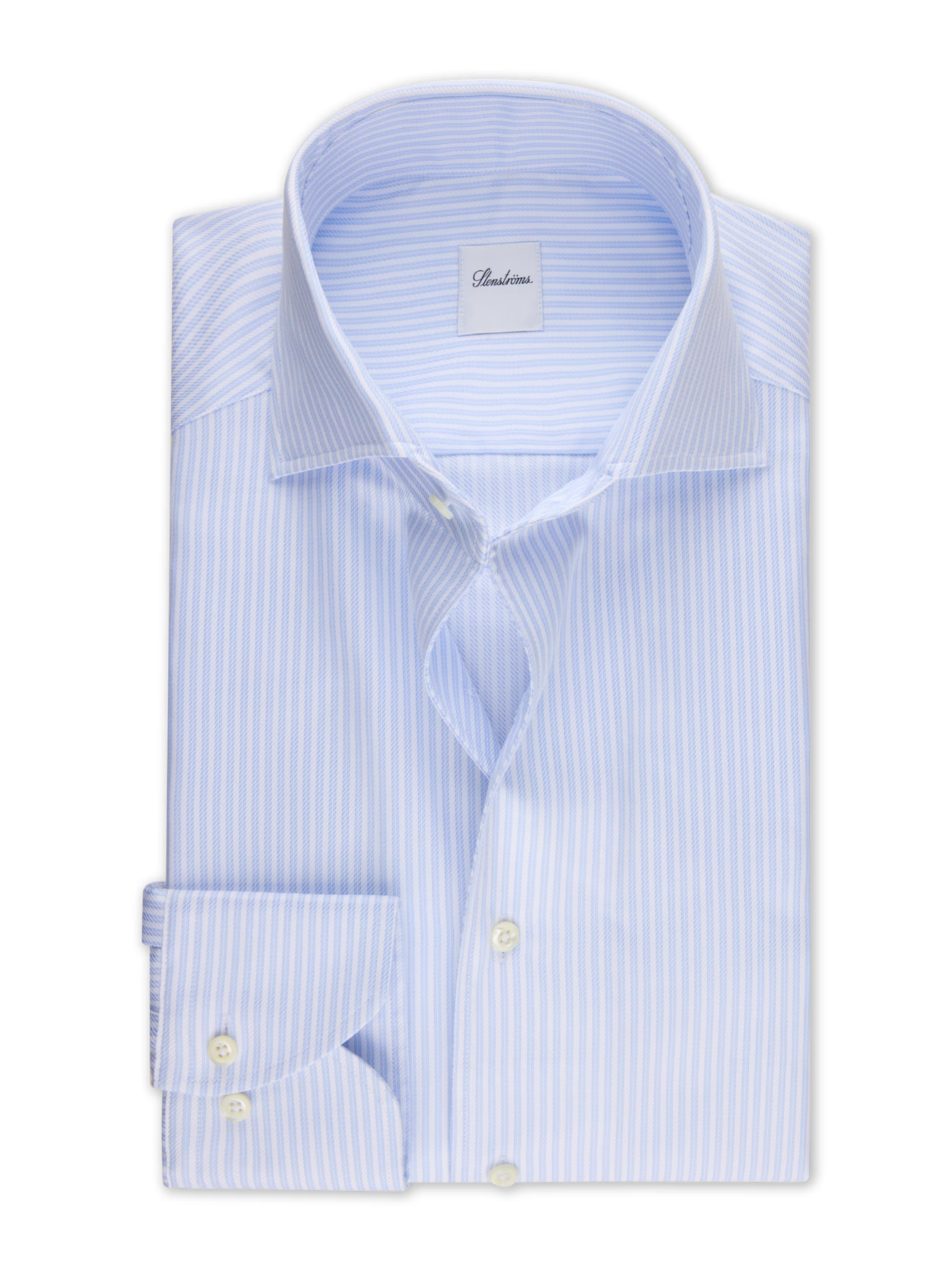 This striped twill shirt is made of twofold cotton. The shirt is detailed with mother of pearl buttons, single cuffs and a one piece collar. One piece collar, No. 50 Single Cuff Twill Mother ... Sjá nánar