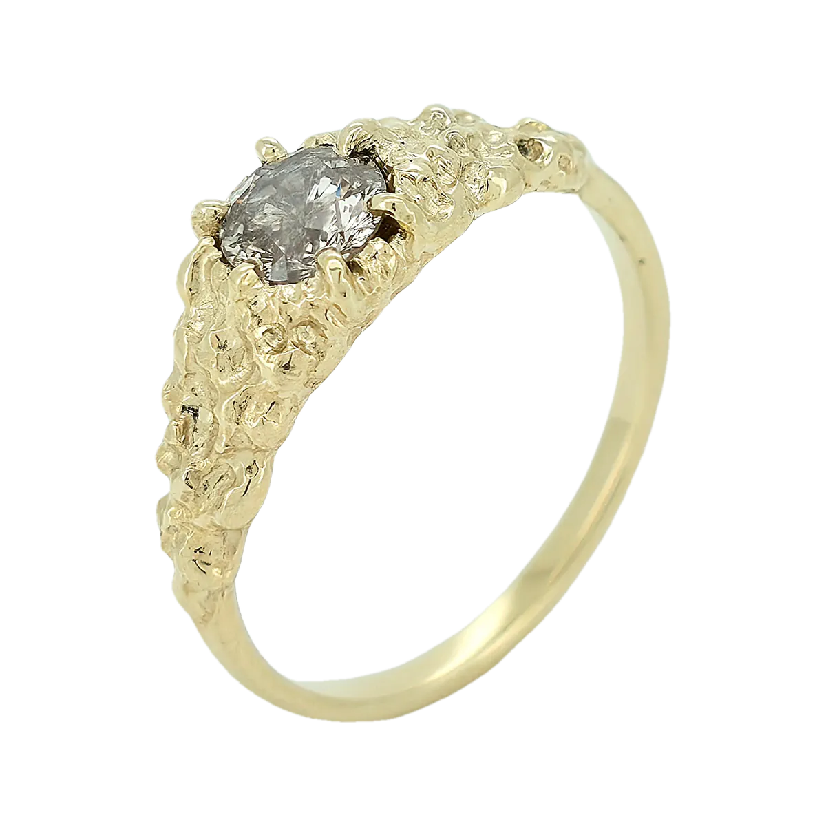 Efni hrings: 14kt gull Steinar: 1 demantur – 0,58ct – brúnn