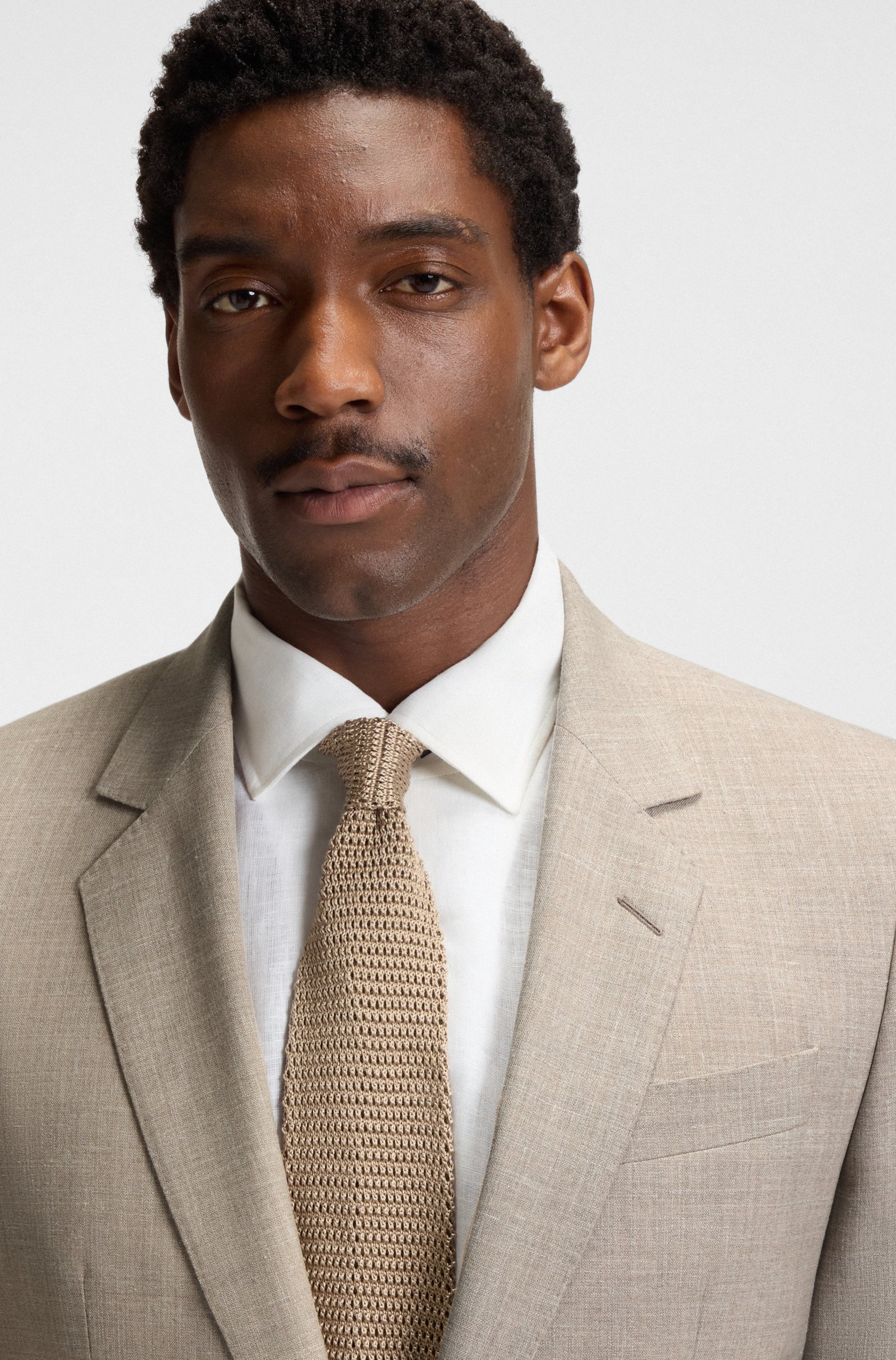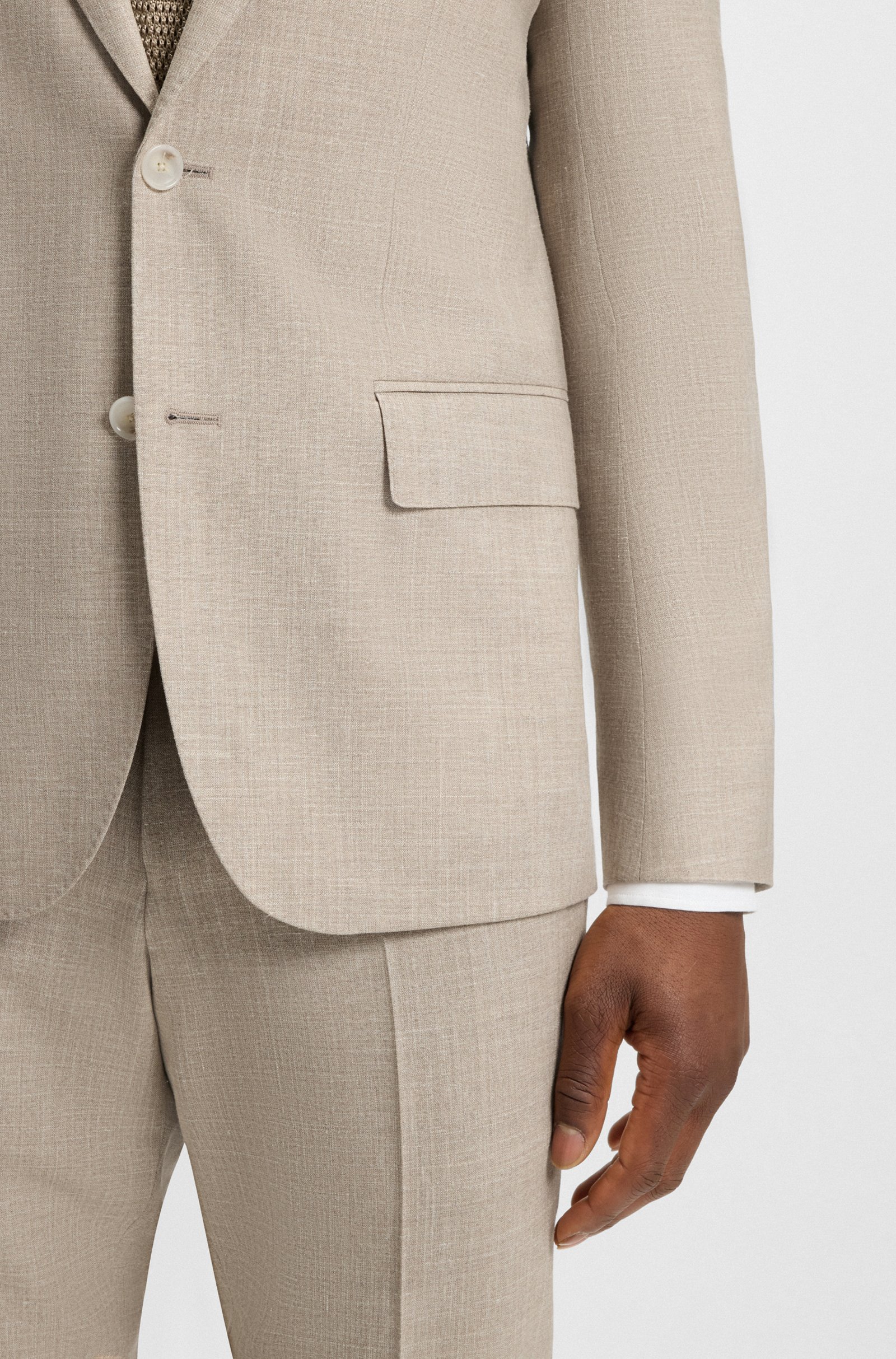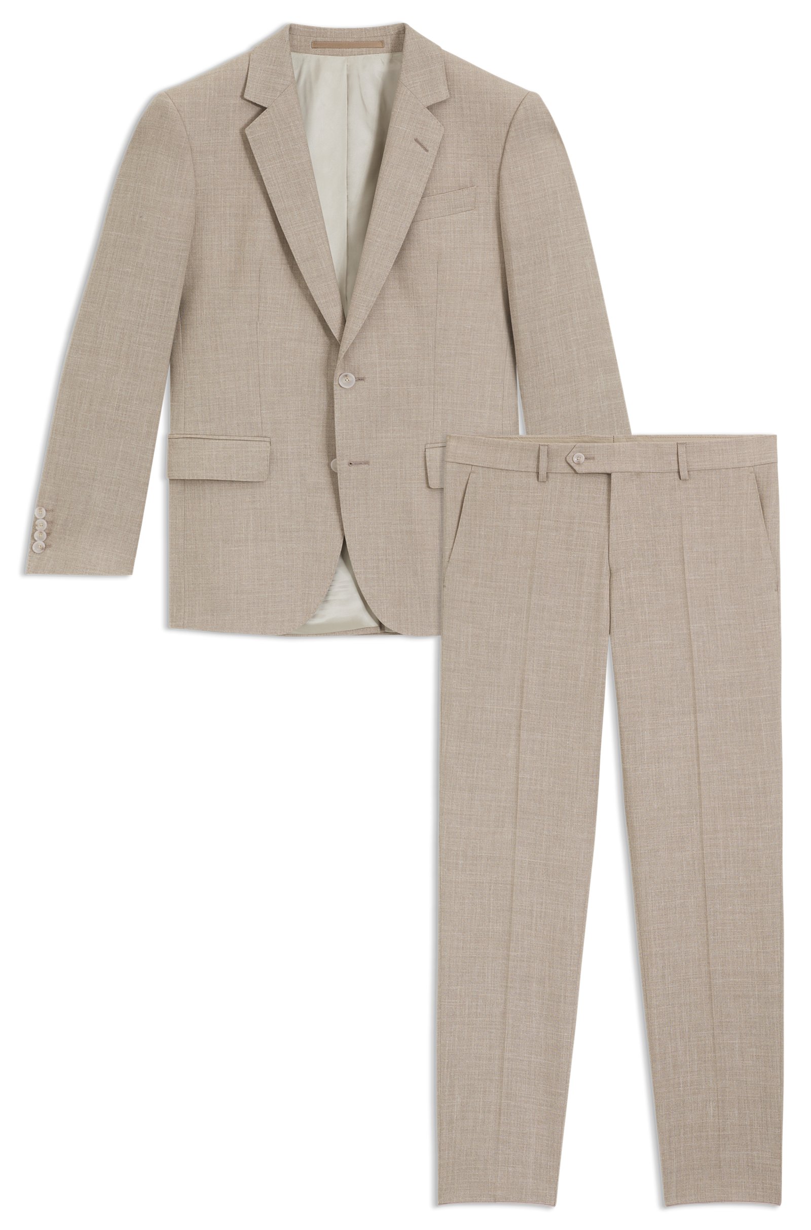 Create fresh formal looks with this BOSS Menswear suit. Featuring a subtle micro pattern that's easy to style, this suit is cut in cloth made from virgin wool, silk and linen for a refined ... Sjá nánar