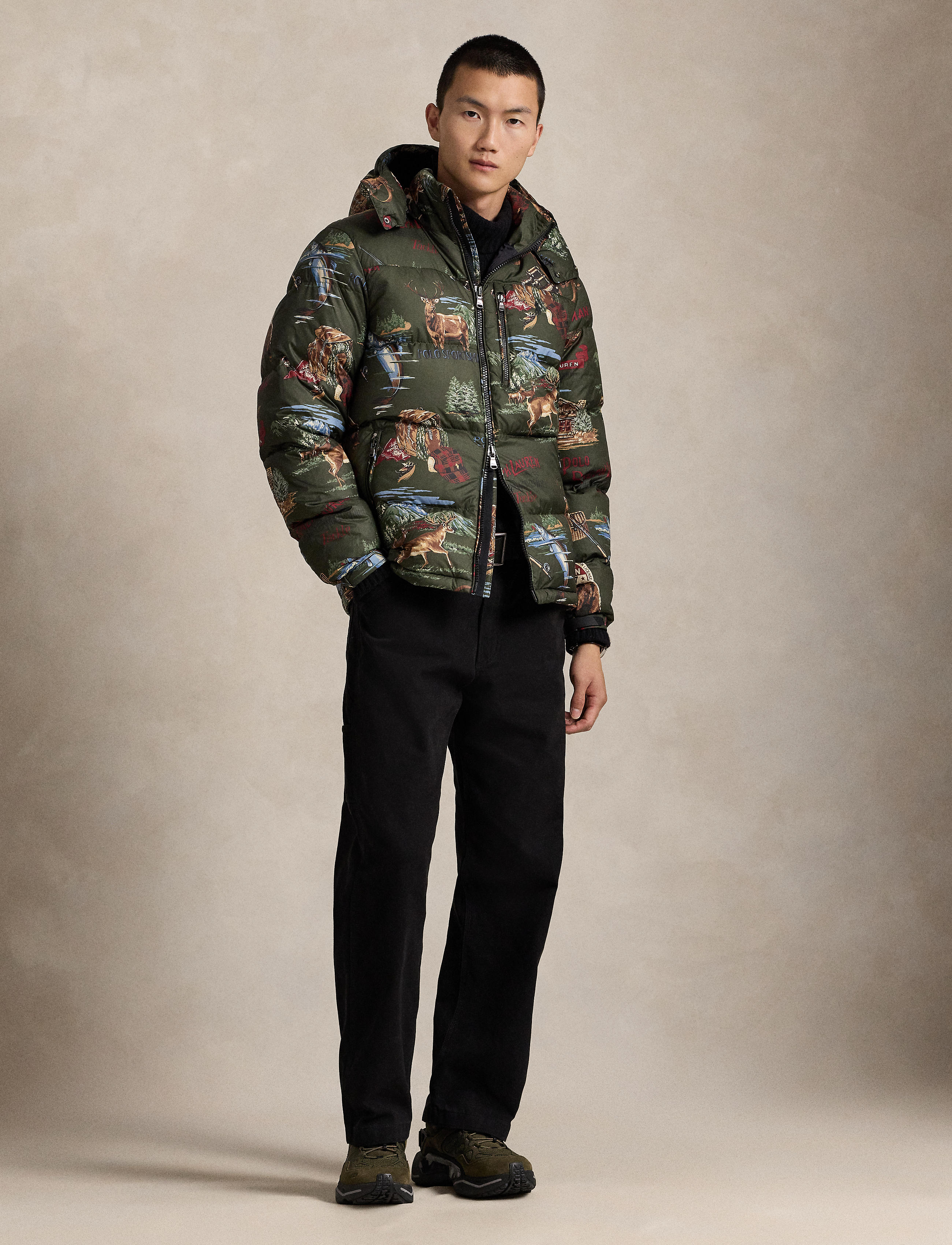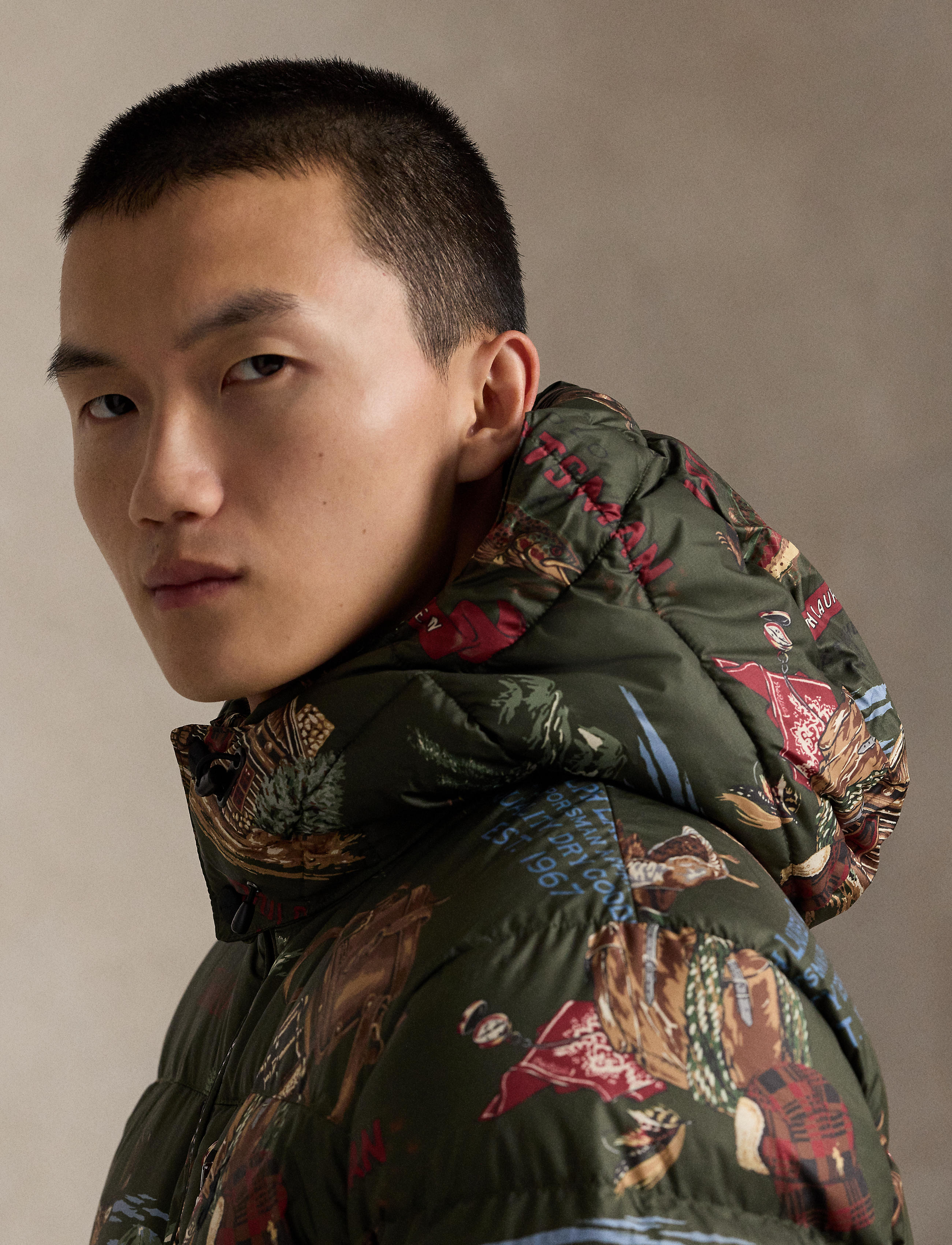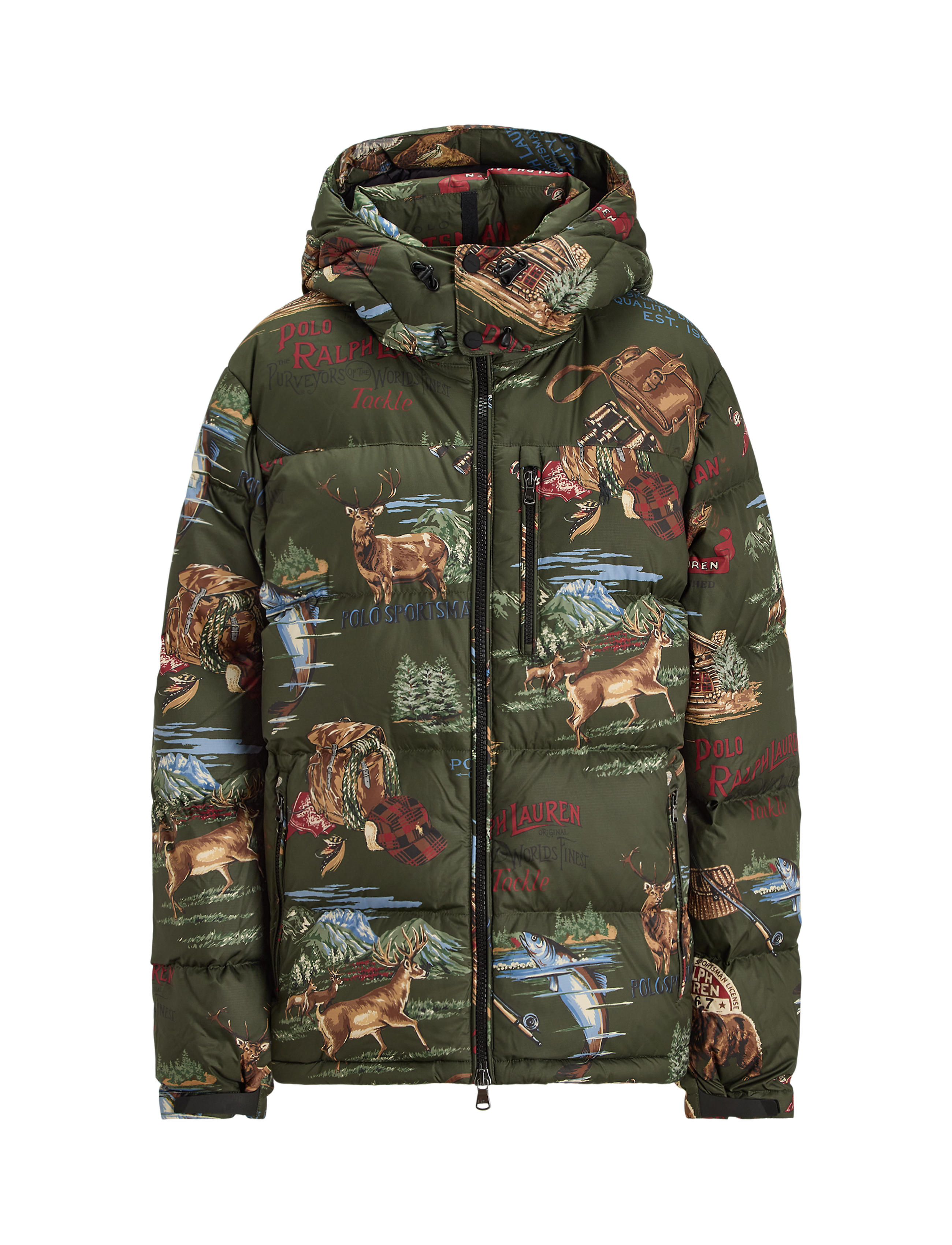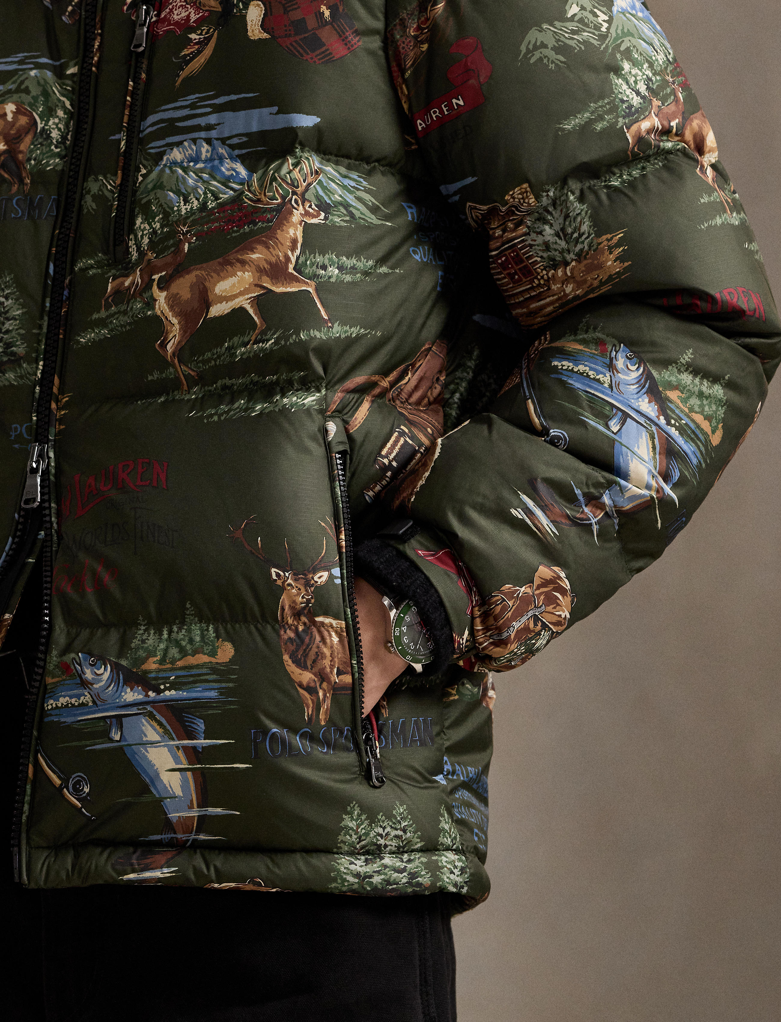 Made from water-repellent fabric, this jacket is insulated with 650-fill-power down and constructed with a detachable hood. It features archival “Sportsman” graphics throughout, as well as new ... Sjá nánar