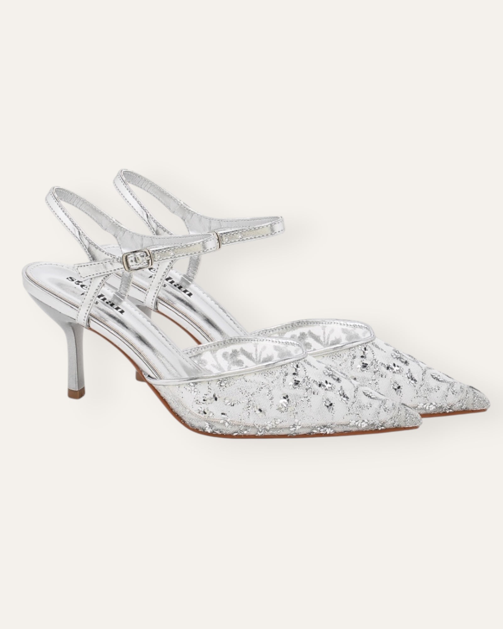 Steph glimmer-lace hælaskór silfur