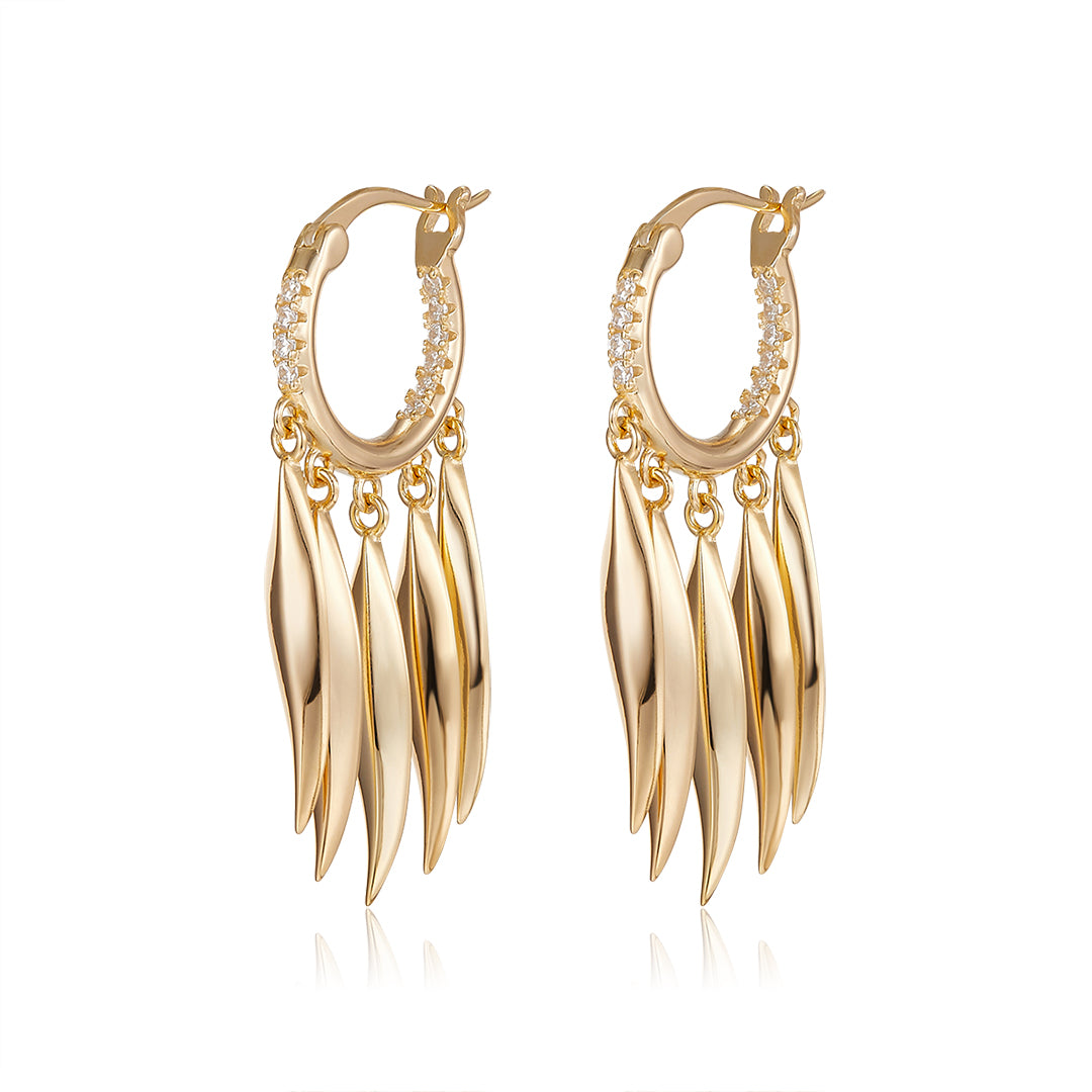 VERA DESIGN Cape of Feathers Divine hoop gylltir silfureyrnalokkar með zirkonia