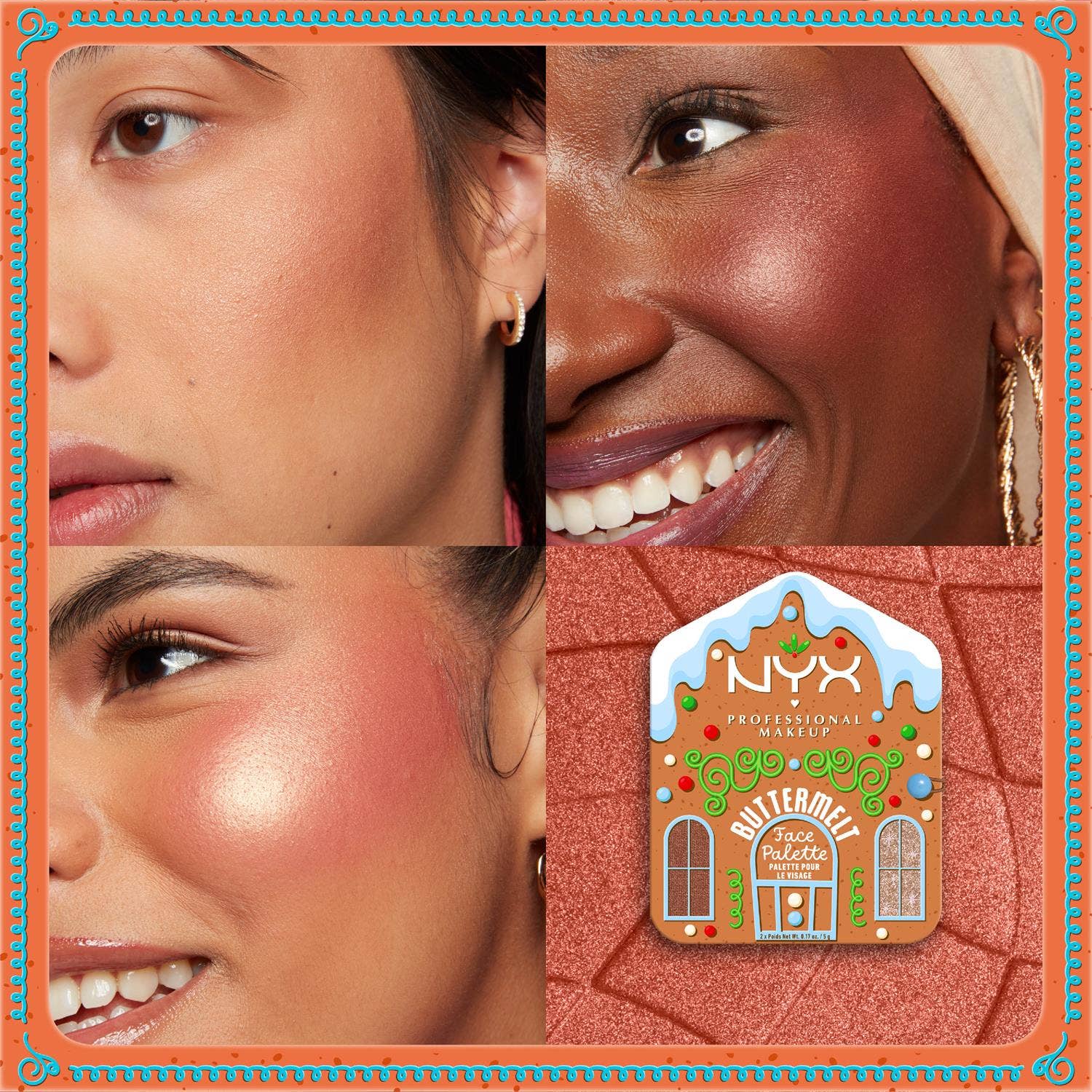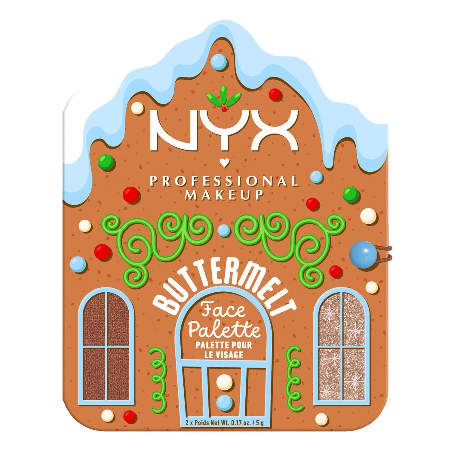 NYX Buttermelt Face Palette Bronzer/Highlighter Deep Hátíðarleg tvílit palletta með bronzer og highlighter sem gefur hlýjan og glóandi vetrarljóma.