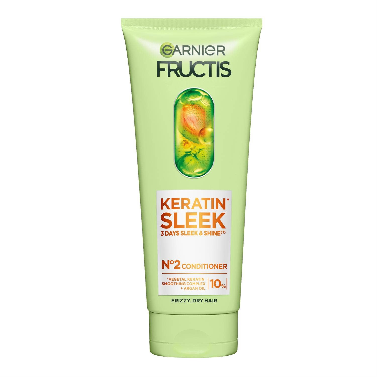 Garnier Fructis Keratin Sleek Conditioner er hárnæring fyrir þurrt og úfið hár sem sléttir tafarlaust yfirborð hársins og gefur því langvarandi ljóma og glans.