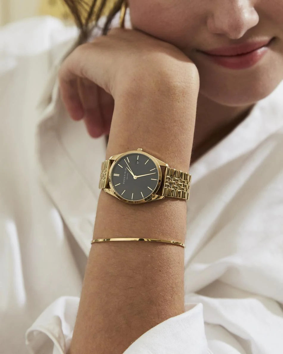 Rosefield - Ace Black Gold Vörunúmer : ACBKG-A13 Gangverk: Rafhlaða/Quartz  Stærð: 33  mm Úrkassi:  Gyllt messing Keðja/ól:  Gyllt stá keðja Skífa: Svört Gler: Hert gler ... Sjá nánar