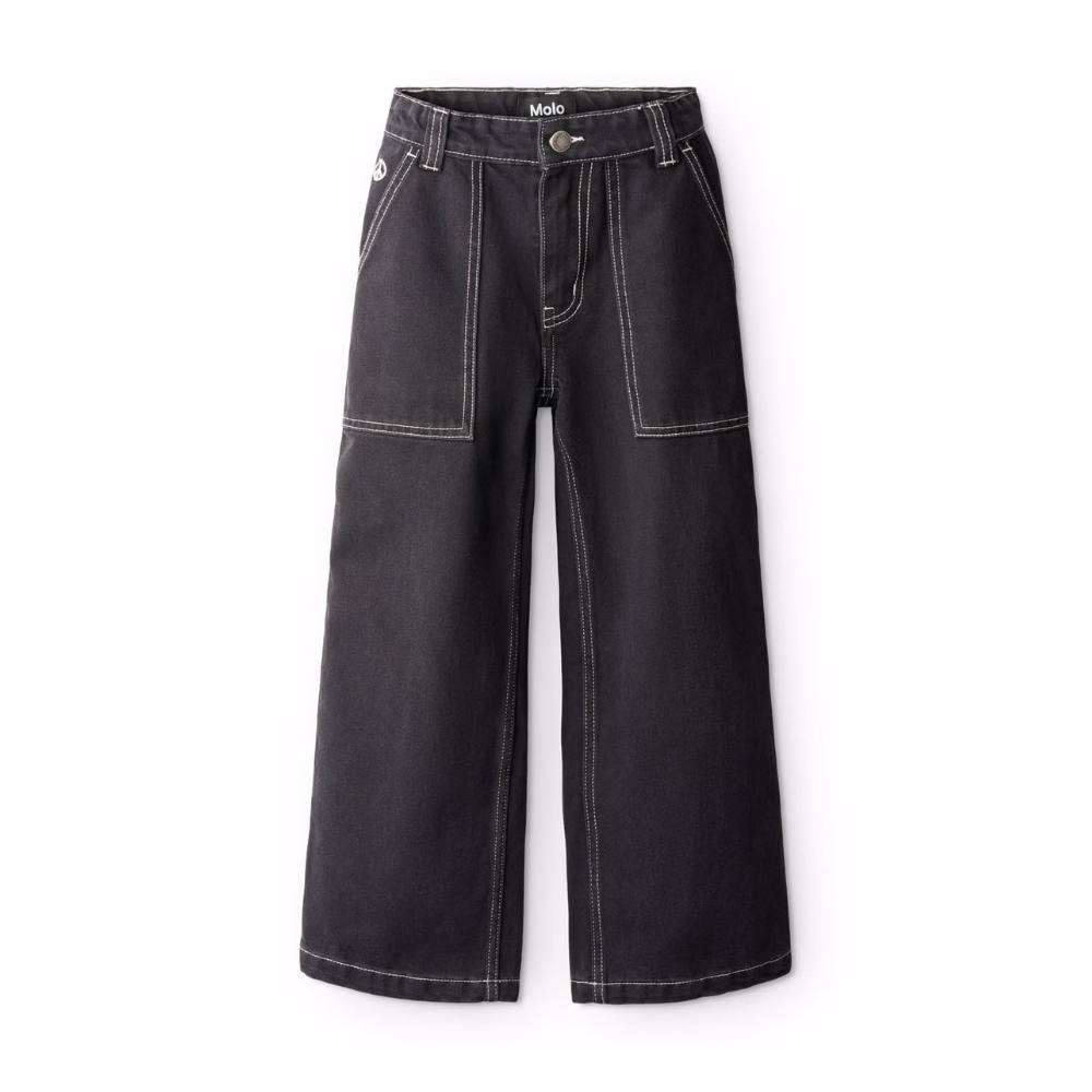 Flottar, víðar gallabuxur frá Molo. 64% bómull, 33% polyester og 3% viscose.
