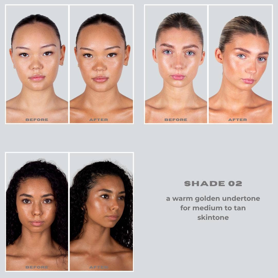 Létt gelkennd formúla sem blandast áreynslulaust á húðina og gefur fallegan lit.