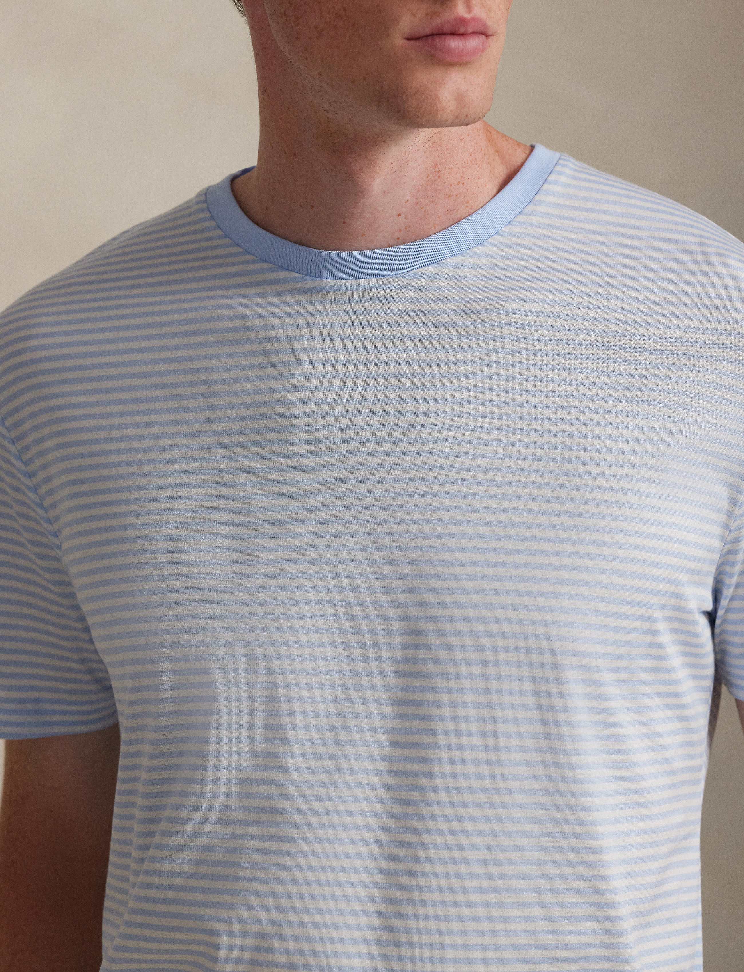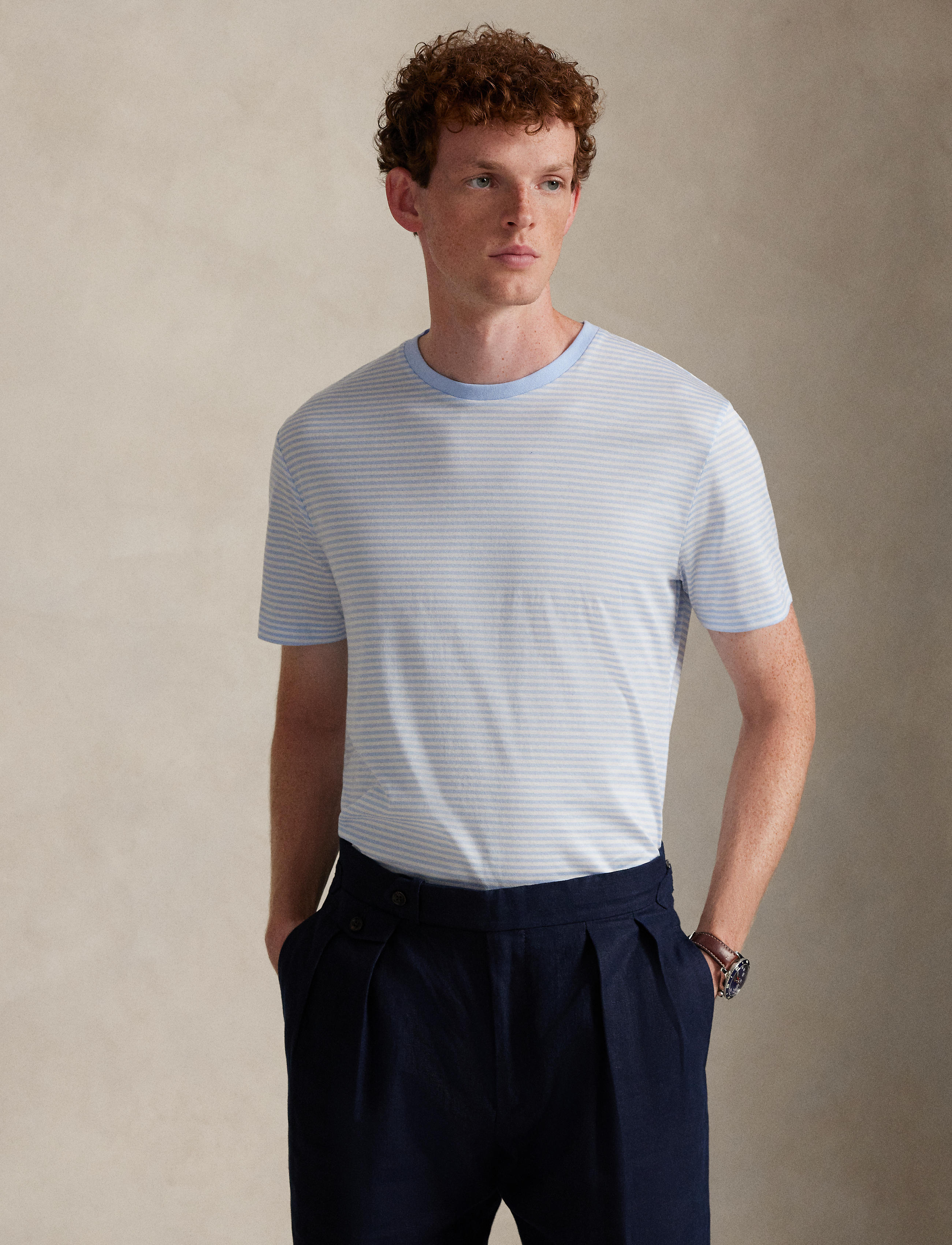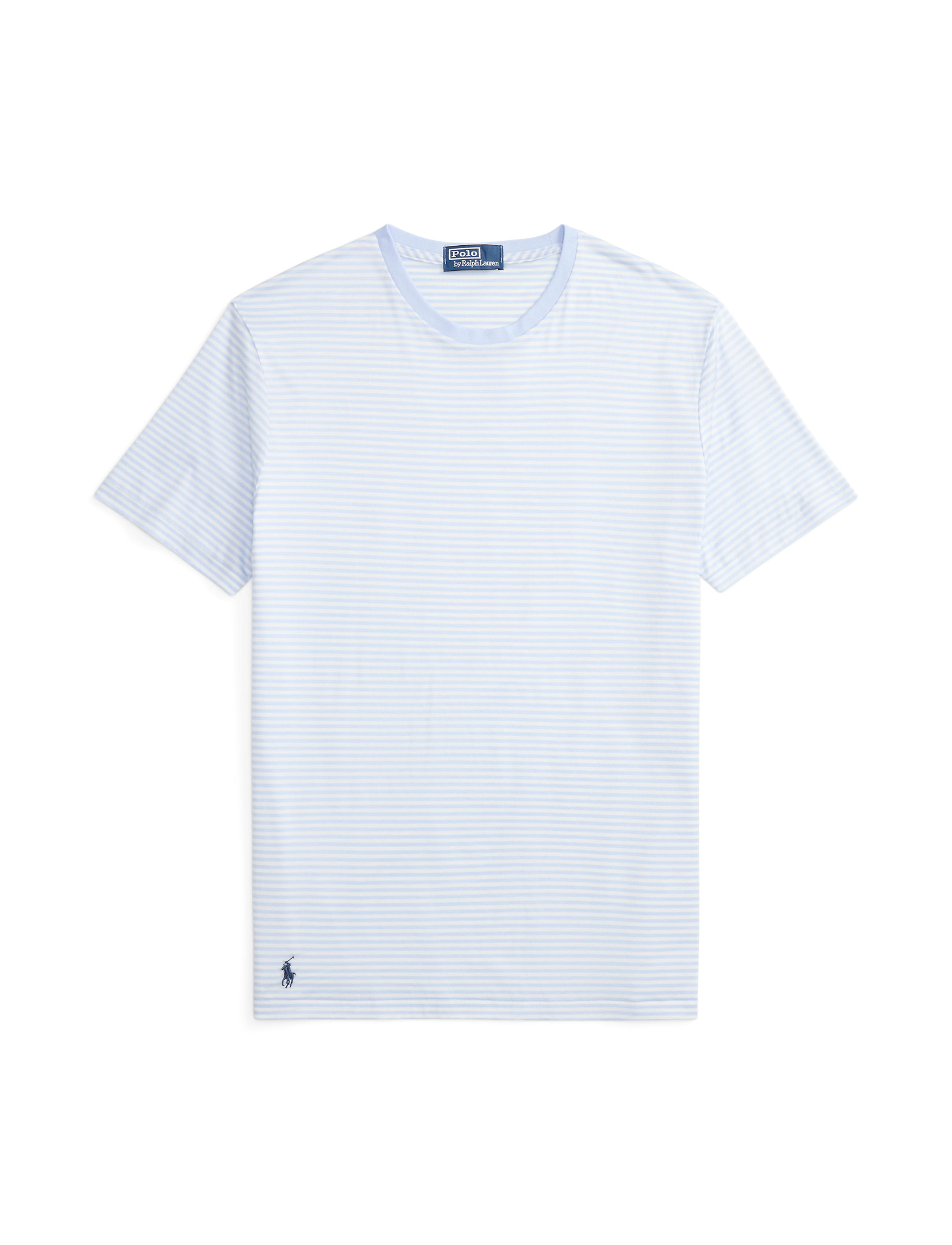 Made with luxurious cotton lisle, this T-shirt is intricately embroidered with a tonal iteration of our Pony to match back to its striped layout. Standard Fit: In between our Custom Slim Fit ... Sjá nánar