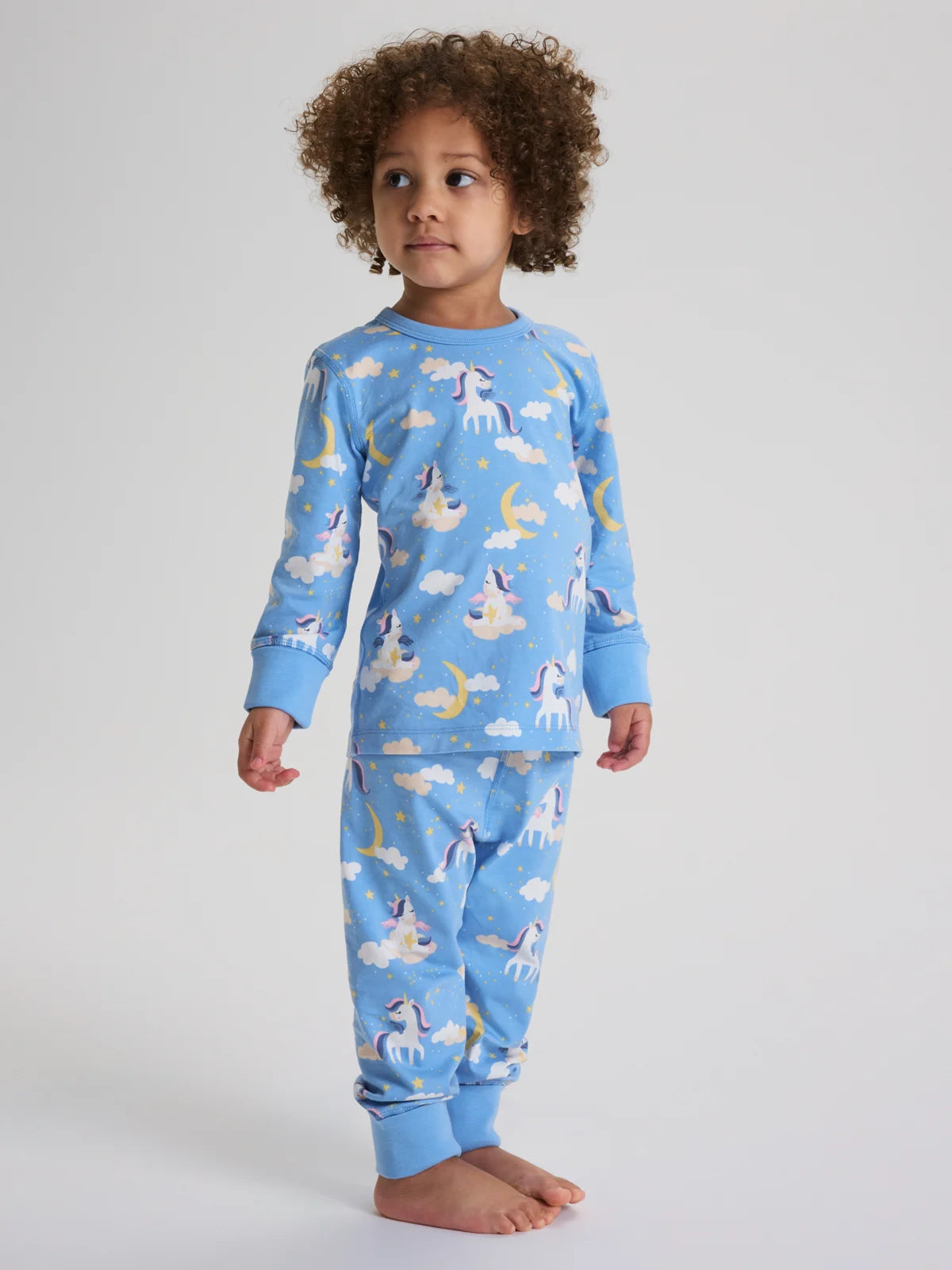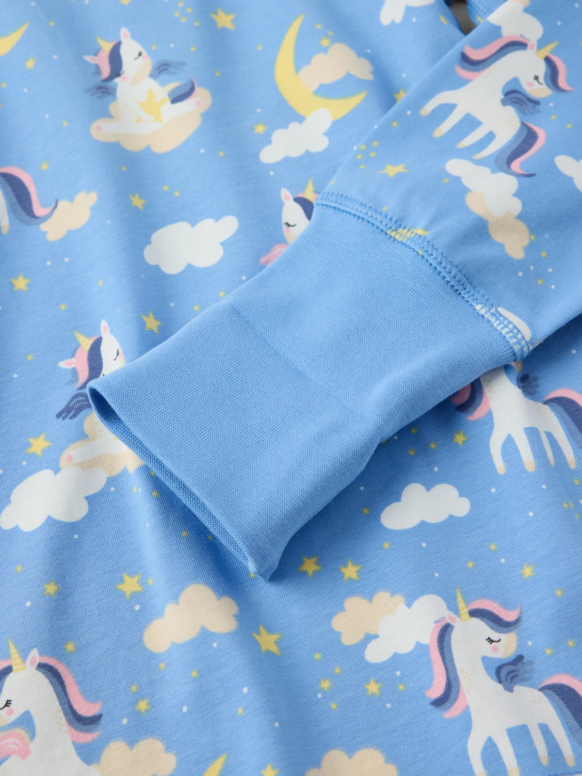Pyjamas unicorns For sweet dreams Extra-soft seams and extendable cuffs Two-piece pyjamas in soft organic cotton. The top has long sleeves with extra long cuffs that can be folded up or down. ... Sjá nánar