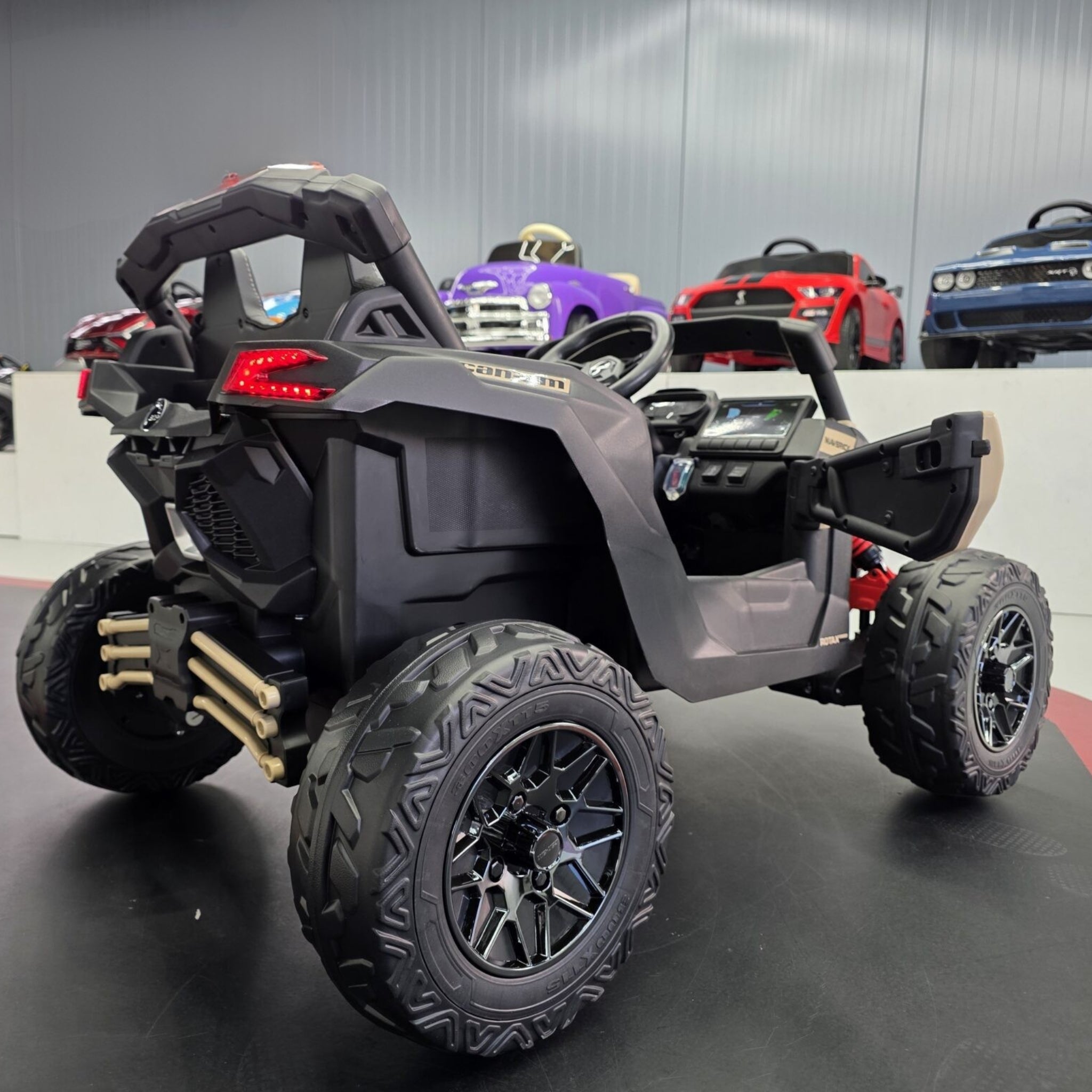 CanAm Maverick Buggy Rafmagnsbíll fyrir börn Þessi buggy bíll er með fjórum 35w brushless mótorum og 12V rafhlöðu. Bíllinn er með tvö sæti og með belti fyrir bæði börnin. Hægt er að ... Sjá nánar