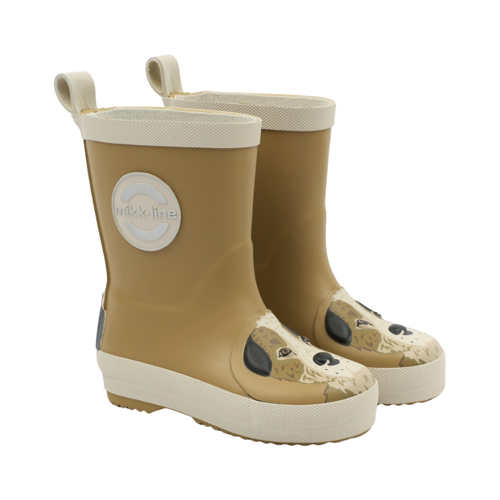 Sæt Mikk-Line stígvél úr náttúrulegu gúmmí með 3D mynd að framan. Stígvélin eru með grófum botni. laust innlegg sem auðvelt er að taka úr og þurrka eftir mjög blauta daga. Endurskinsborðar ... Sjá nánar