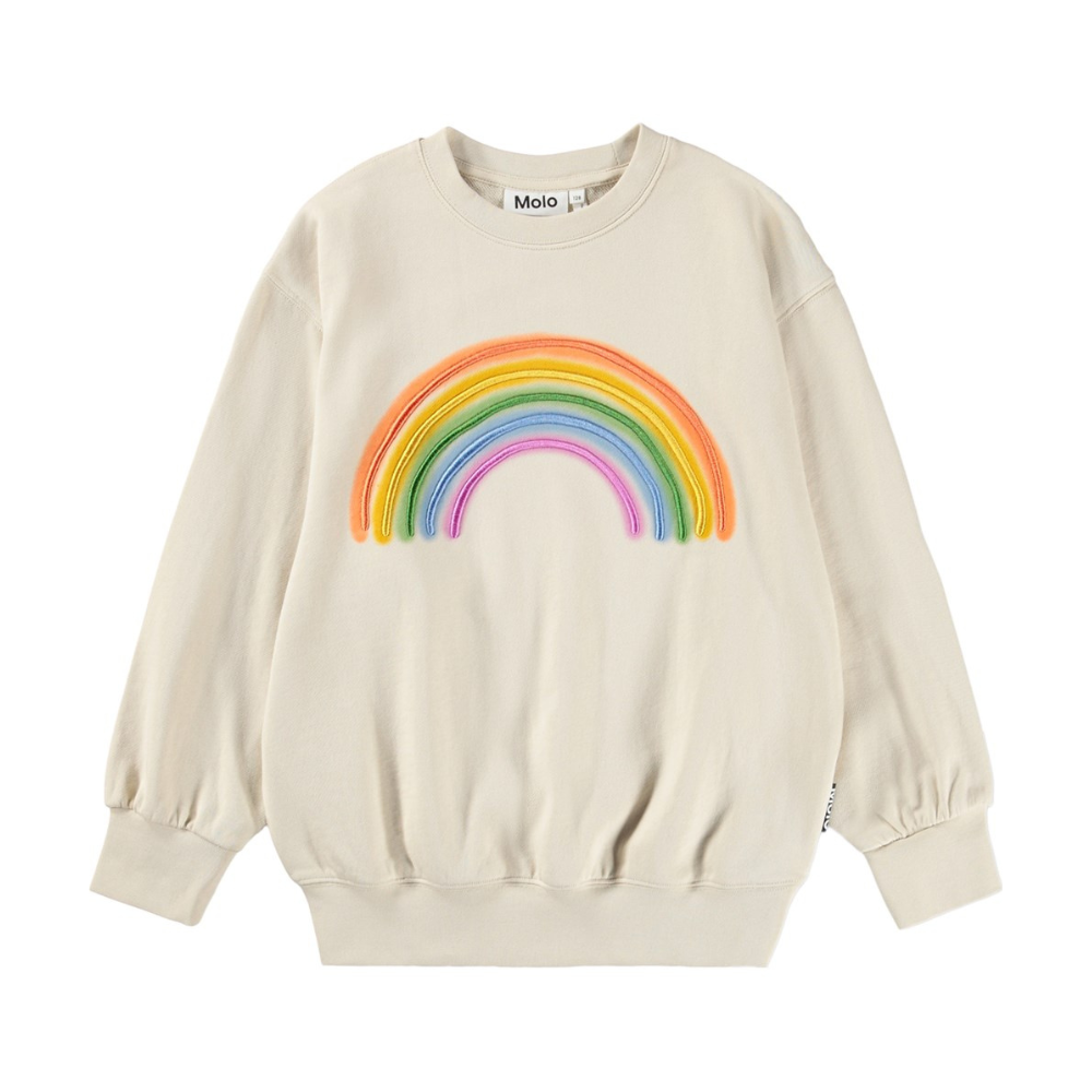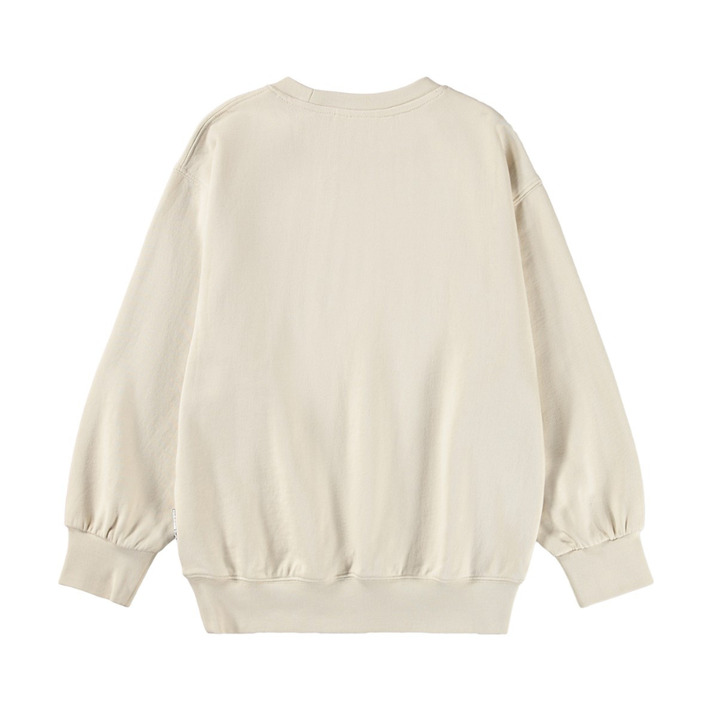 Ljós, síð peysa peysa frá Molo með stroffi við hálsmál, ermar og mitti. 100% bómull.