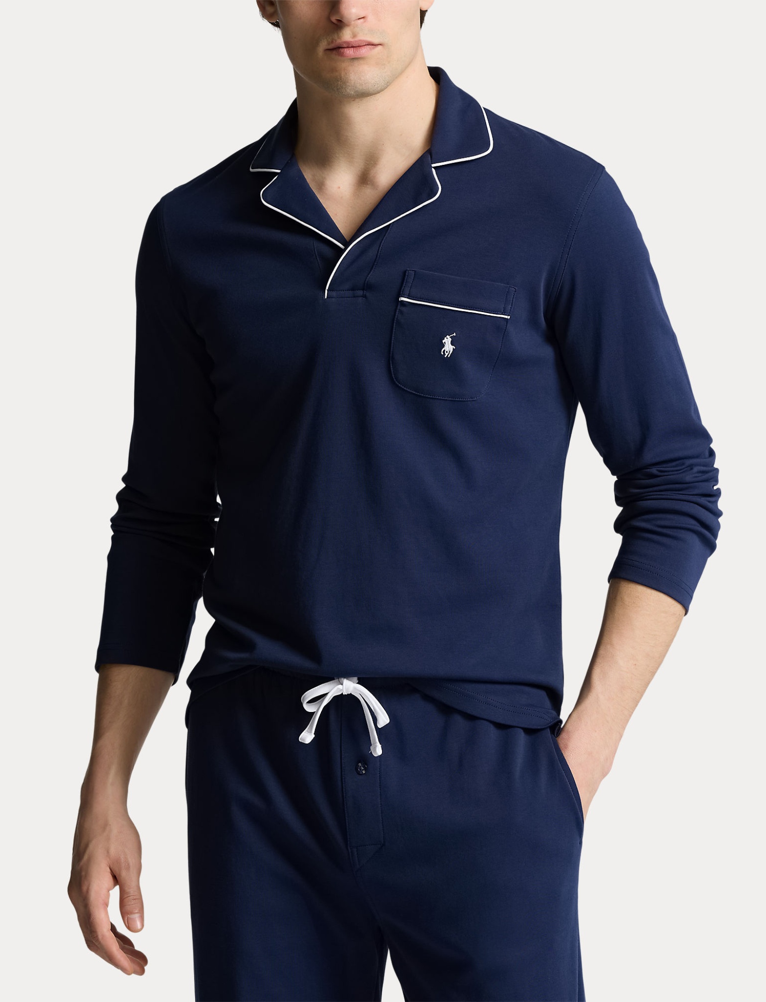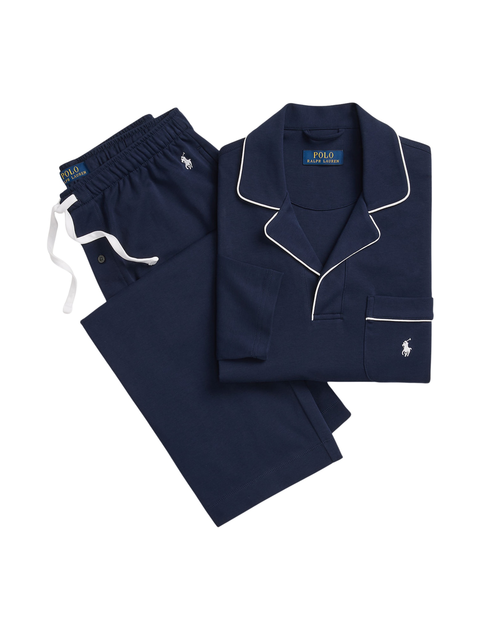 Crafted with smooth cotton interlock, our classic pajama set is updated with a popover-style long-sleeve shirt and slim-fitting drawstring pants. Contrast detailing and our signature ... Sjá nánar