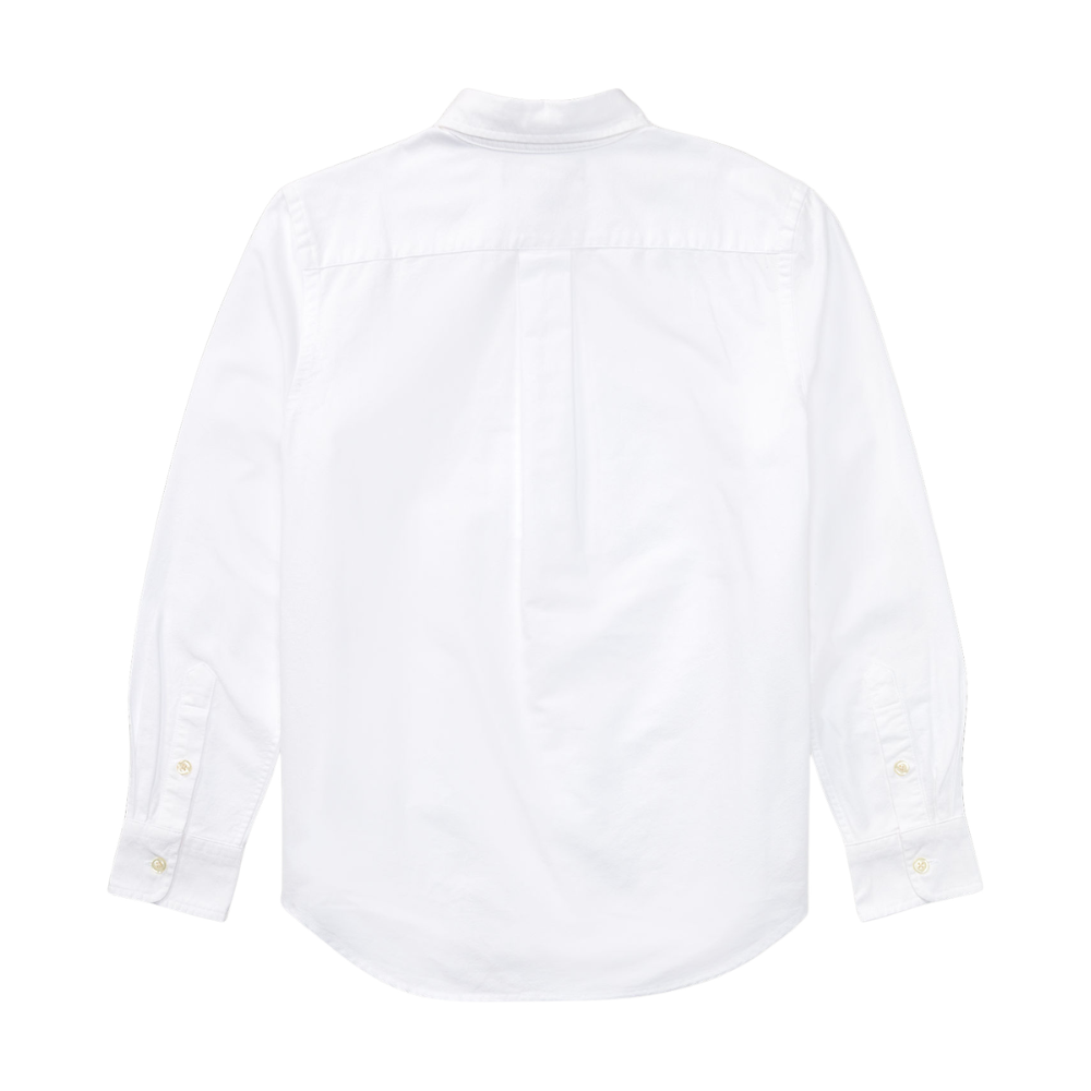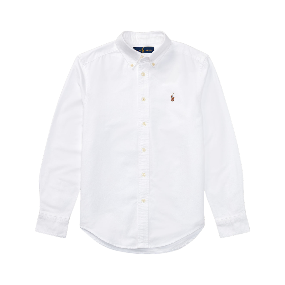 Hvít, hneppt skyrta með kraga frá Polo Ralph Lauren. Skyrtan er með brúnu, útsaumuðu logo vinstra megin að framan. 100% bómull.