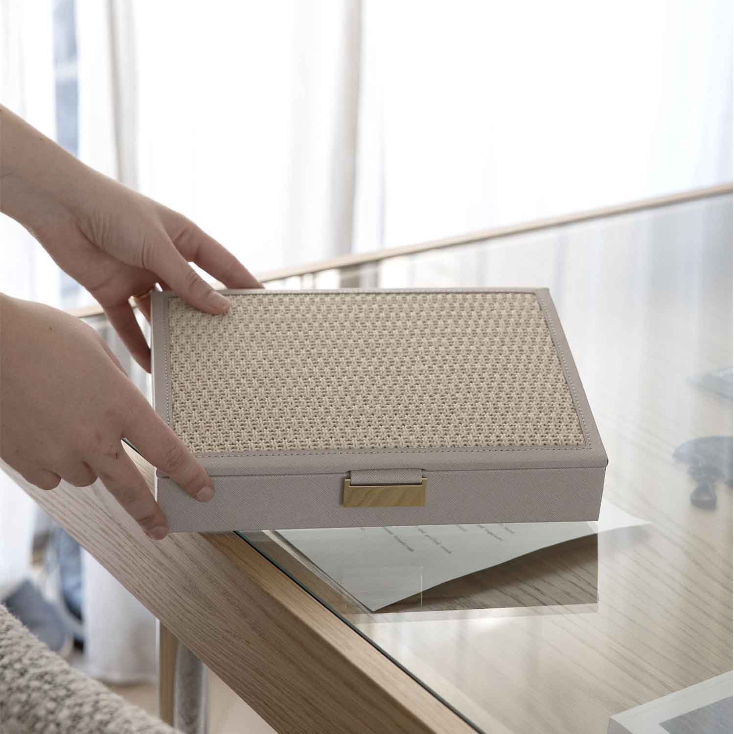 Stórt skartgripaskrín með loki - Grátt Raffia