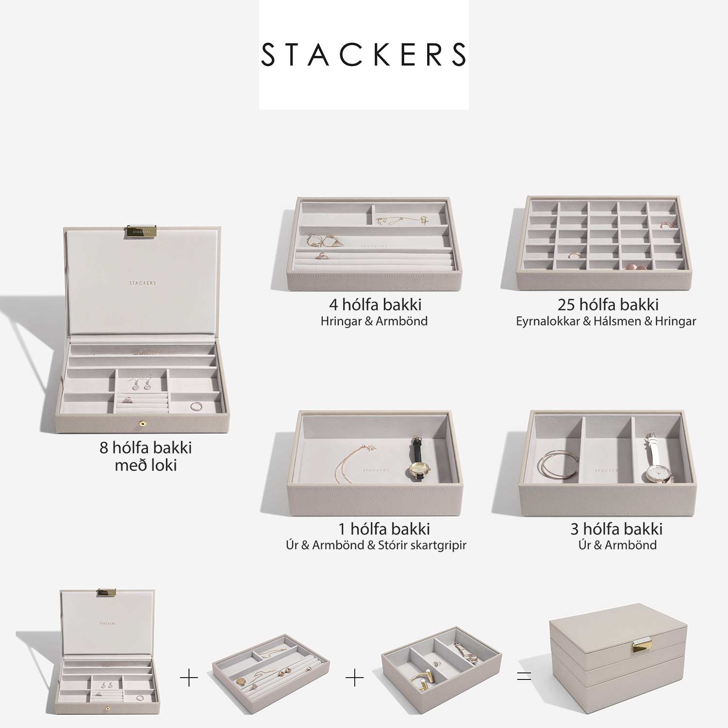 Skartgripaskrínið hentar vel sem toppurinn á Stackers bakkana eða sem stakt skrín.   Hægt er að stafla bökkum úr Stackers línunni undir skrínið og mynda þannig þitt skrín sem passar undir þína ... Sjá nánar