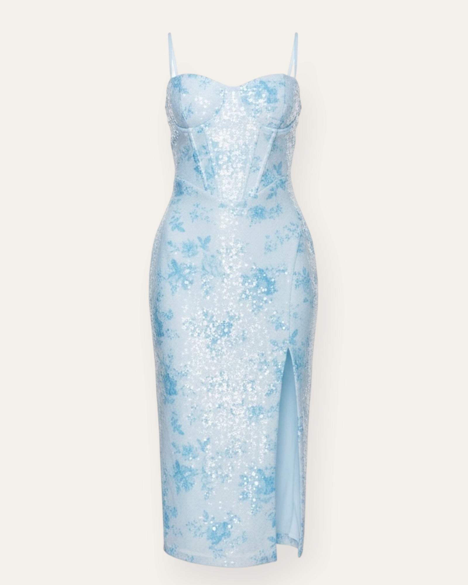 ✨ Glitrandi pallíettu midi kjóll í ljósbláum tónum ✨   Einstaklega fallegur og kvenlegur kjóll sem fangar athyglina! Þessi ljósblái midi kjóll er þakinn fínum pallíettum sem gefa honum ... Sjá nánar