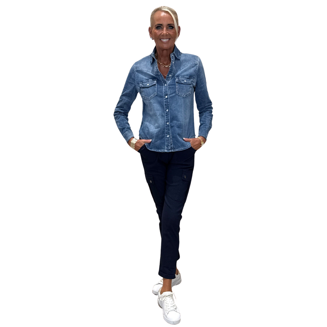 Boyfriend buxurnar með hliðarvösum - Dökkbláar