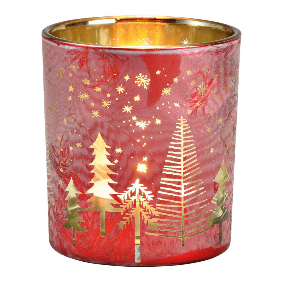 Wurm Kertaglas með jólatrjám 8cm rautt og gyllt