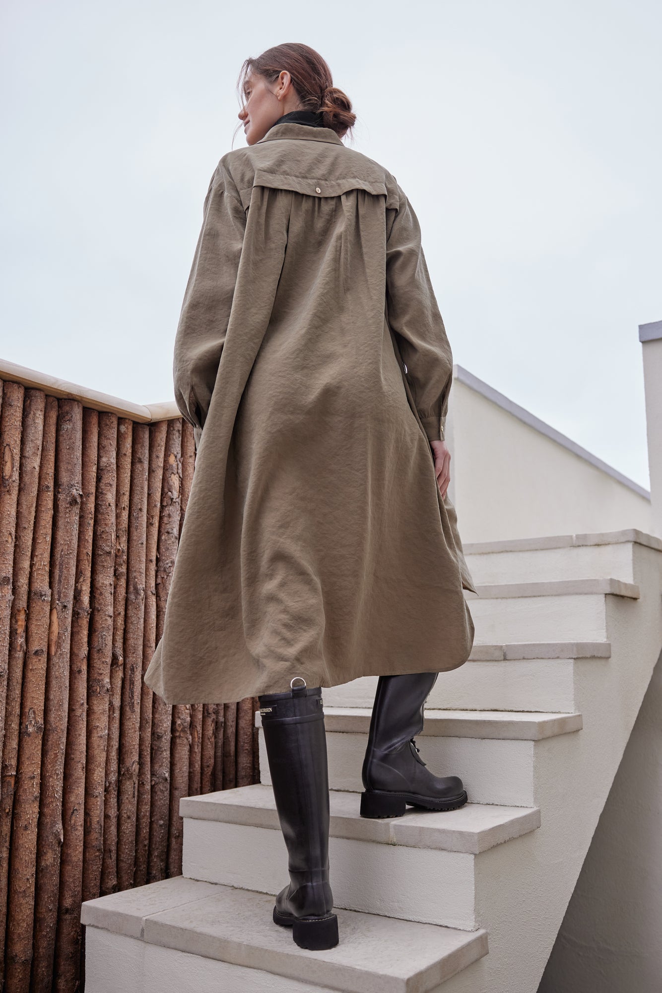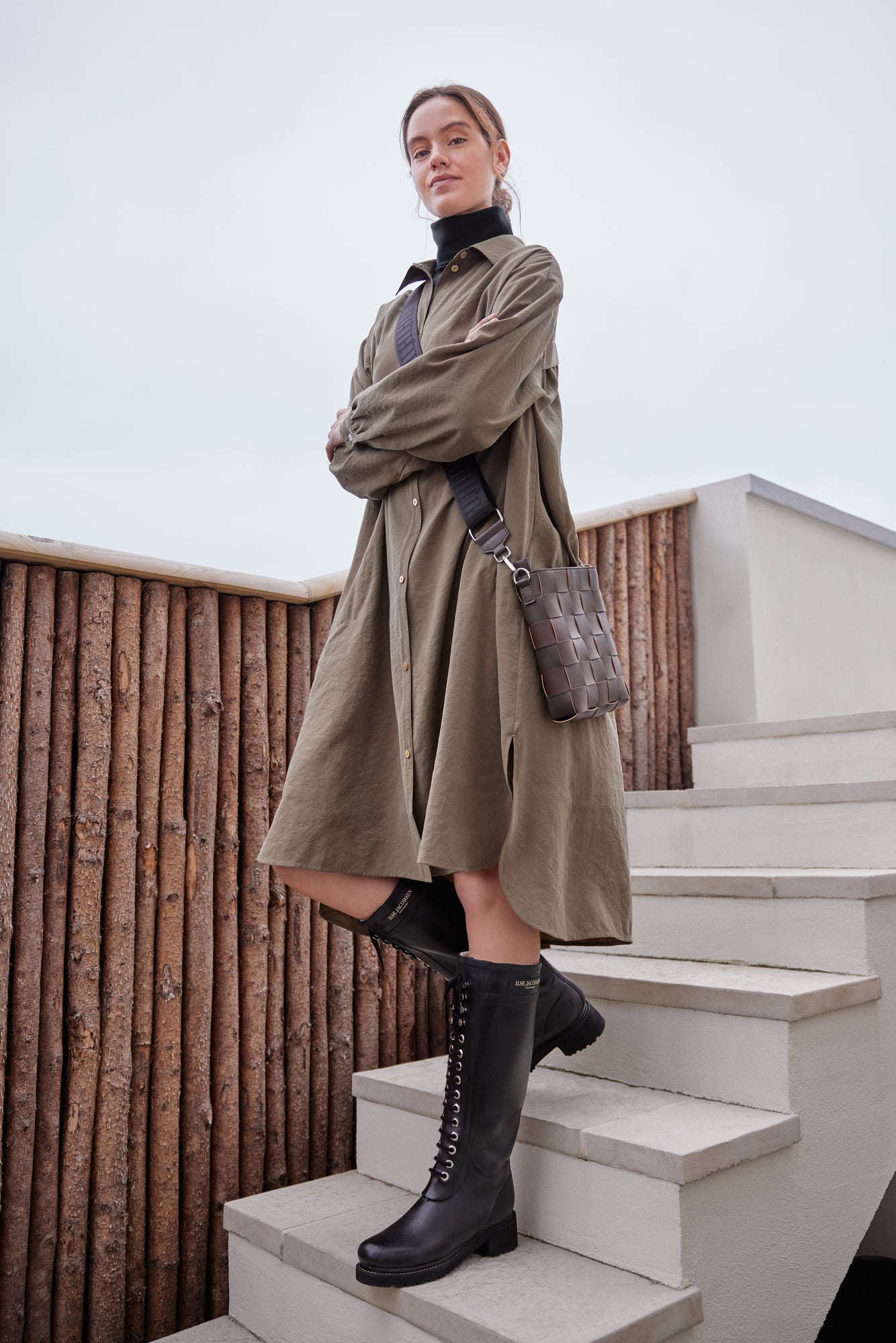 Millisíður skyrtukjóll með löngum ermum. Létt og þægilegt efni.  86% Modal 14% Endurunnið Polyester