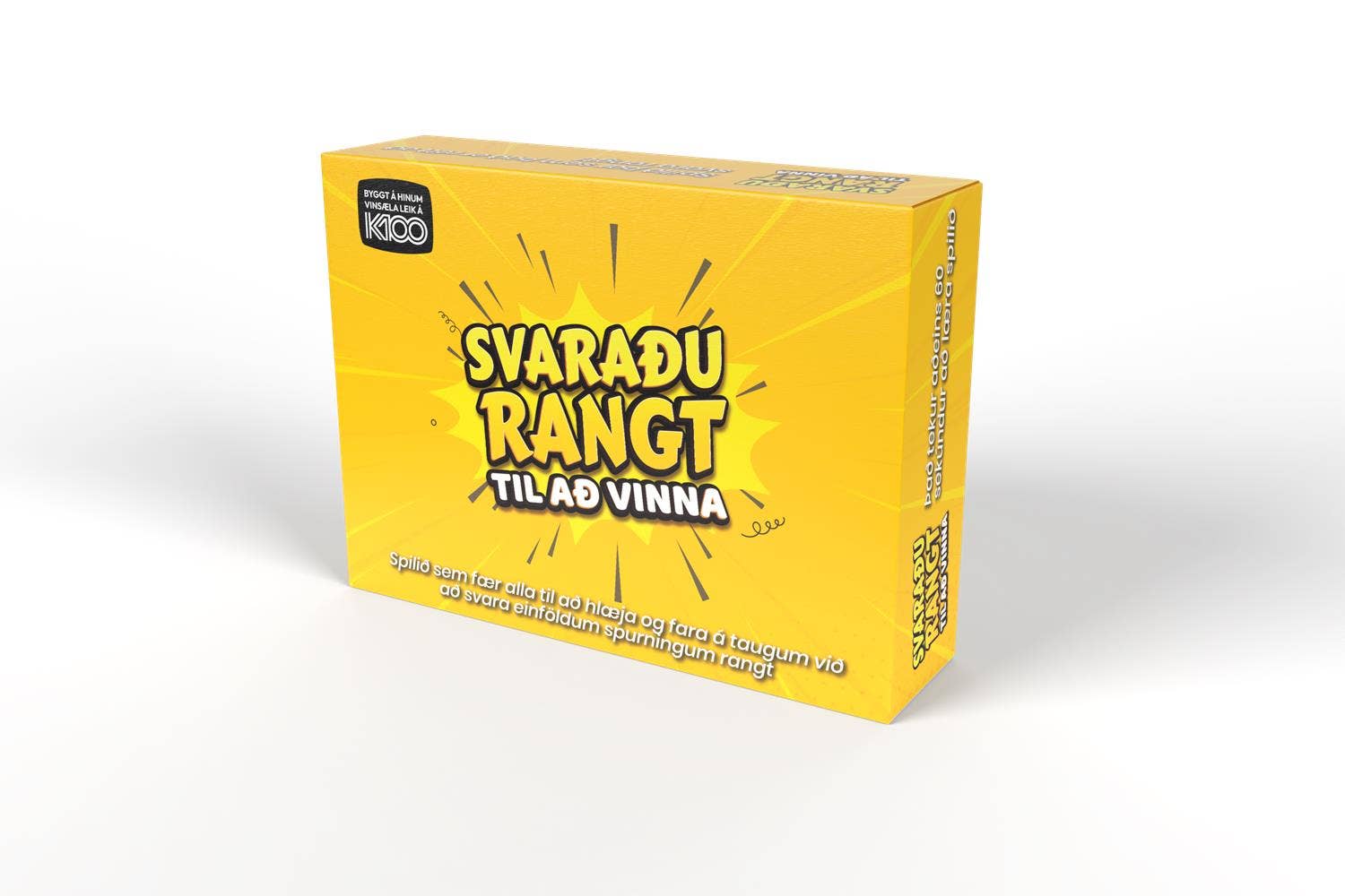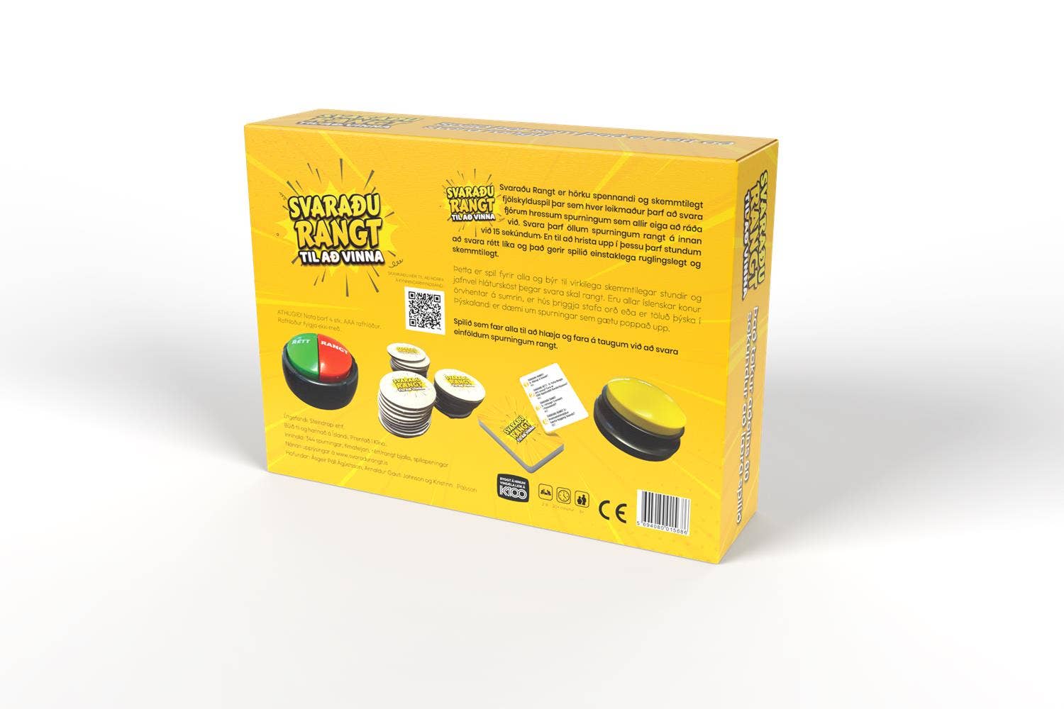 Svaraðu Rangt er hörkuspennandi og skemmtilegt fjölskylduspil þar sem hver kostur Þarf að svara fjórum hressum spurningum sem allir eiga að ráða við.