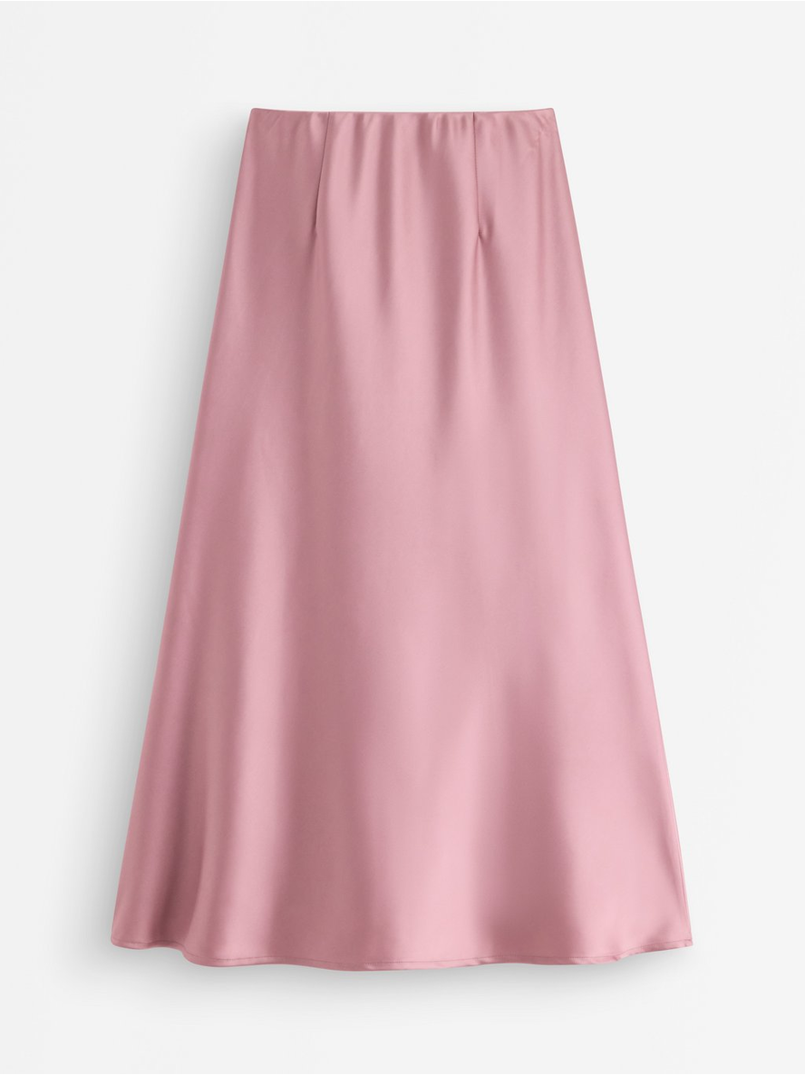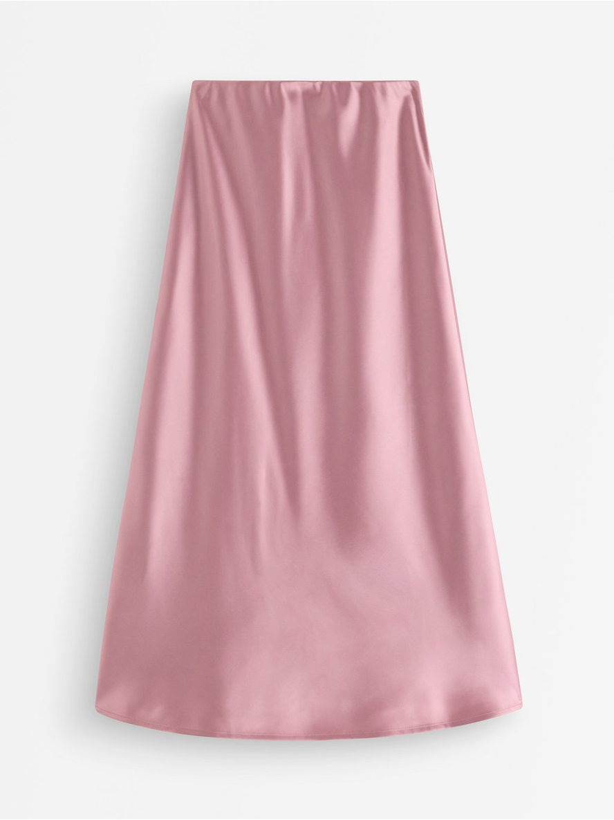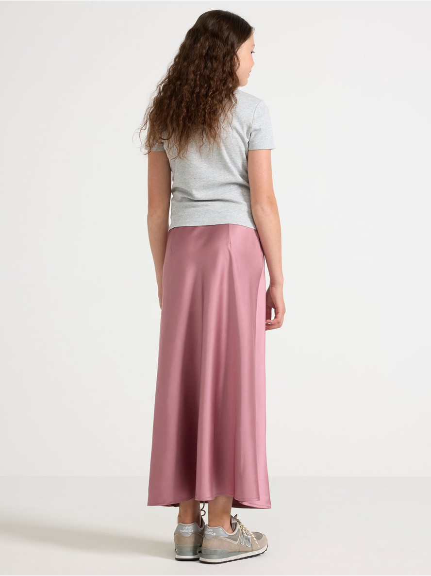 Satin skirt with a comfy elastic waist. Elastic waist Contains 97% recycled polyester 97% pólýester 3% elastan