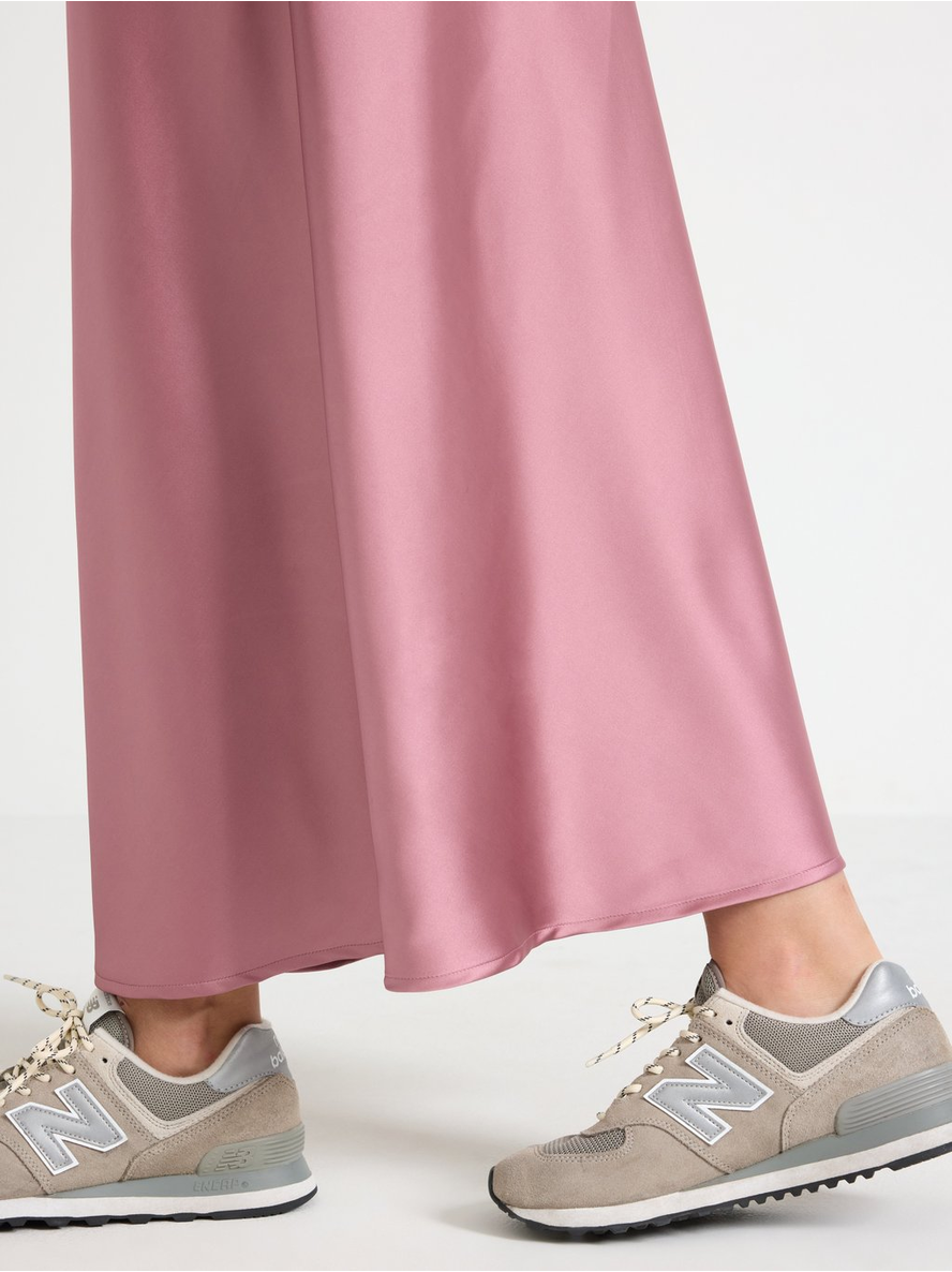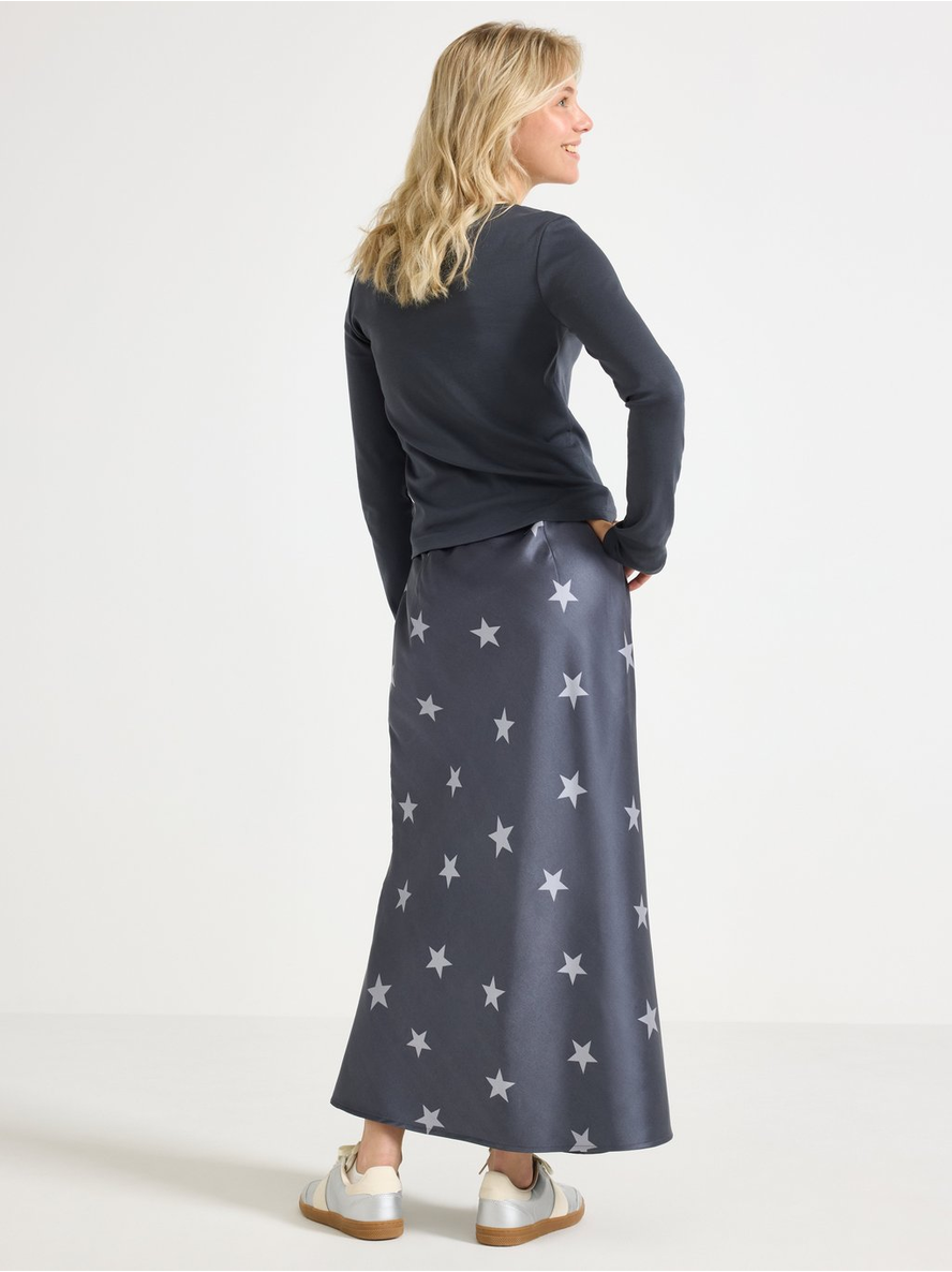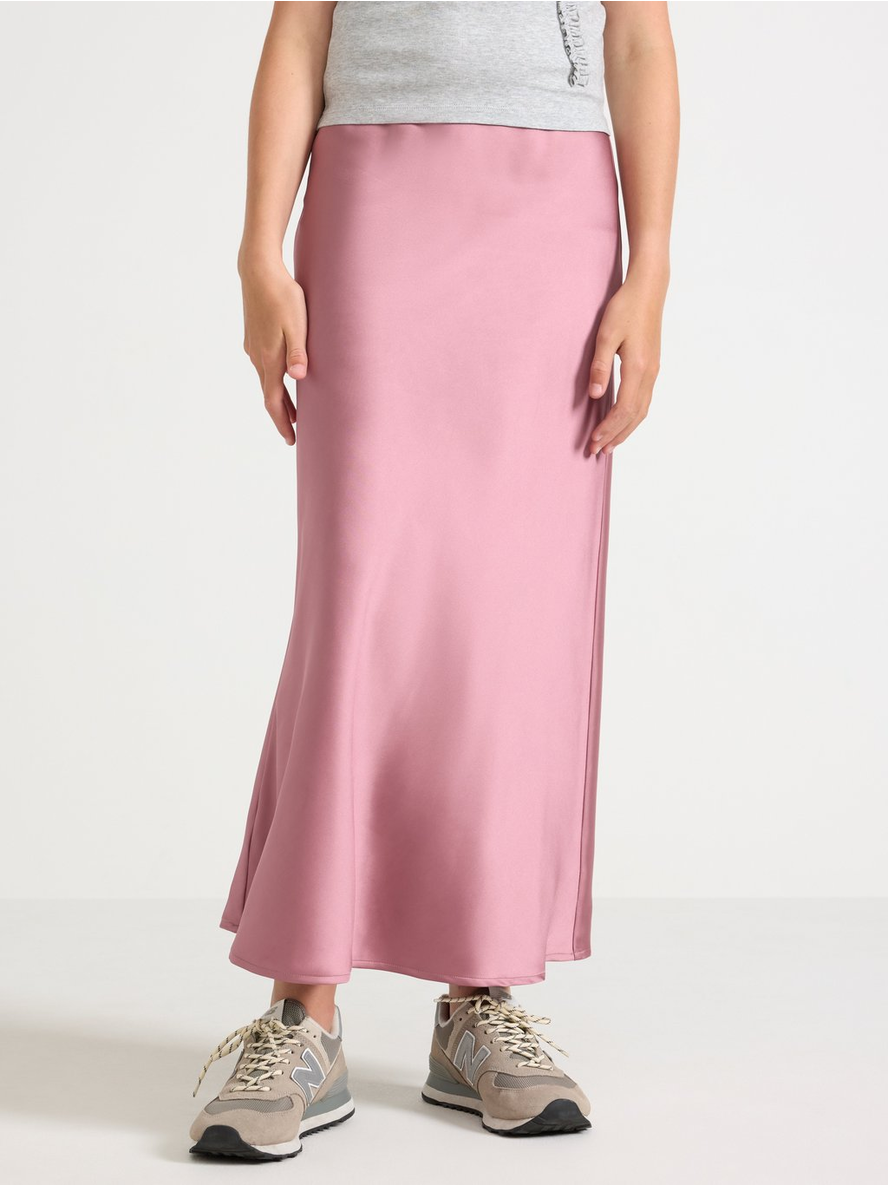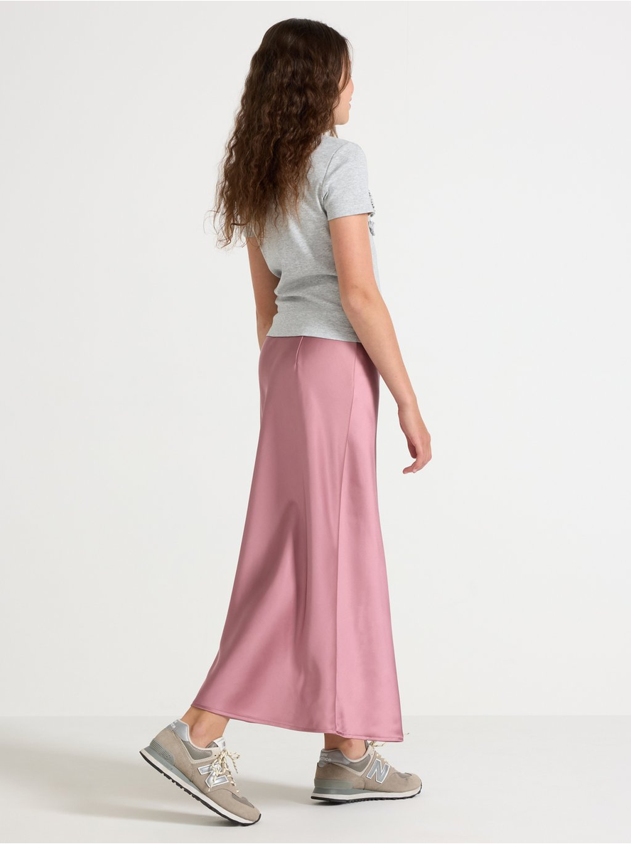 Satin skirt with a comfy elastic waist. Elastic waist Contains 97% recycled polyester 97% pólýester 3% elastan
