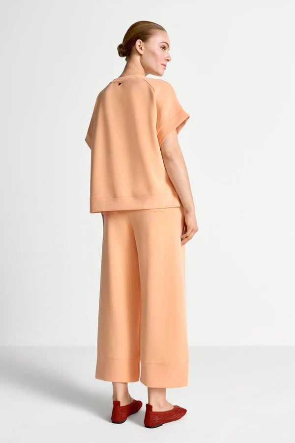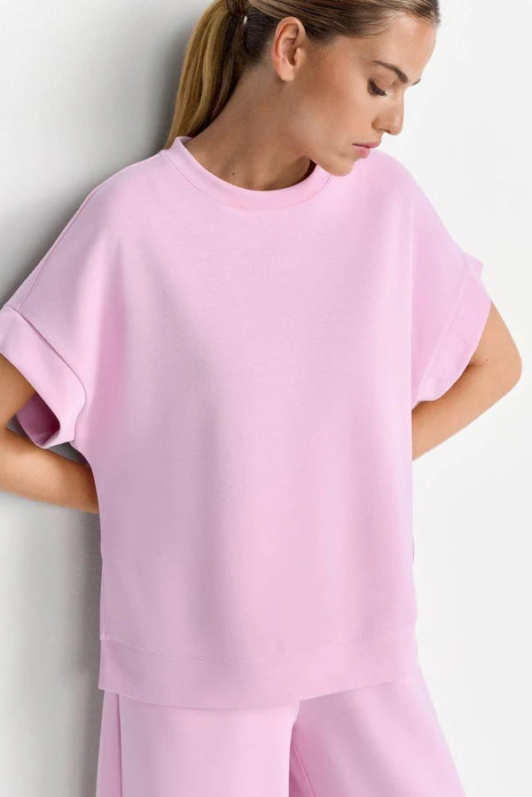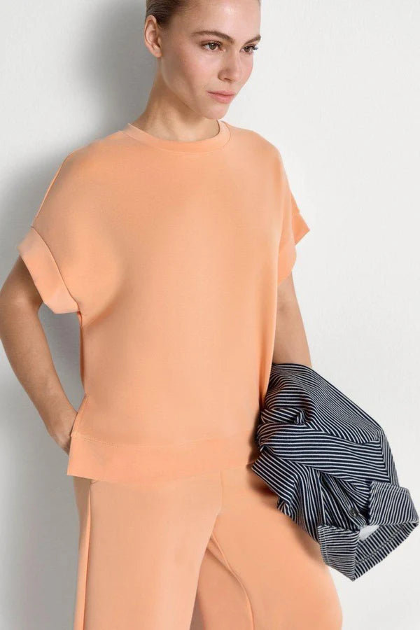 Mjúkur og þægilegur stutterma bolur úr scuba efninu. Laust snið.  52% Modal 42% Polyester 6% Elastane