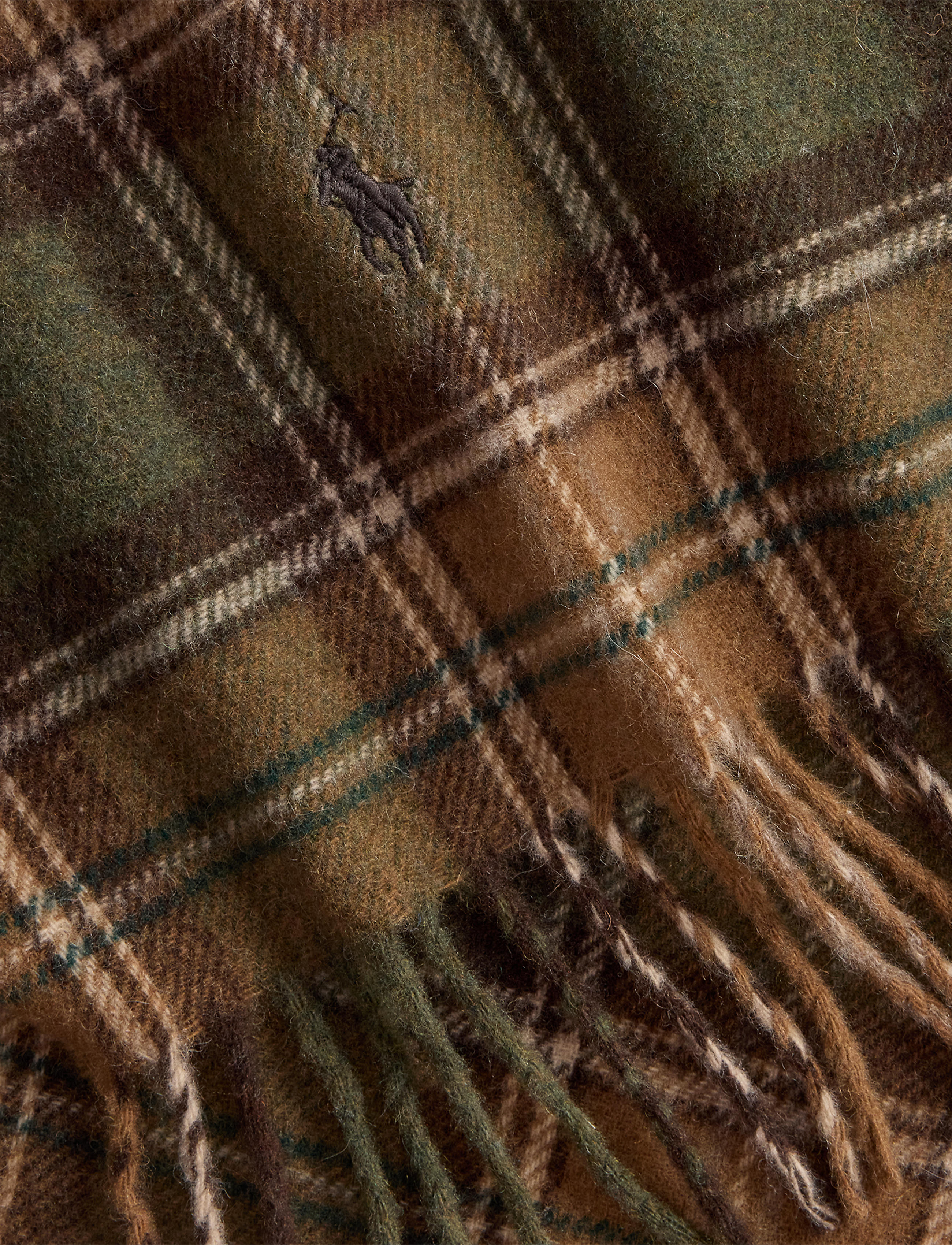 A vibrant plaid motif and our signature embroidered Pony define this classic Italian-crafted wool scarf. 76" L x 12" W. Rope-fringe ends. Signature embroidered Pony at one end. 100% wool. Dry ... Sjá nánar