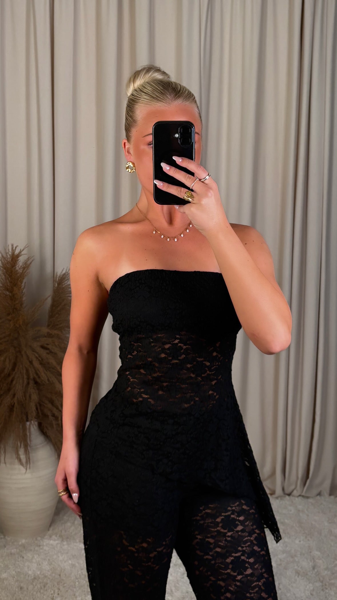 Eight lace off shoulder bolur svartur