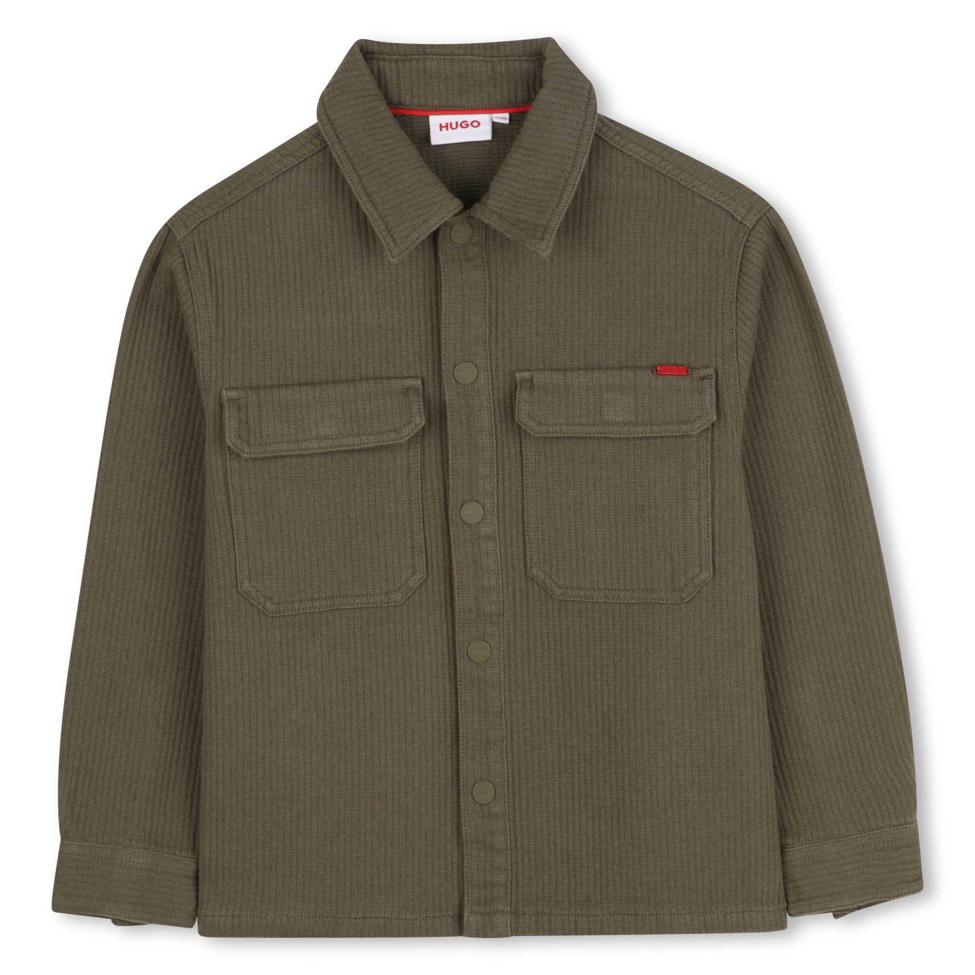 Flott, græn flauelsskyrta frá Hugo. Skyrtan er smellt að framan og með kraga.