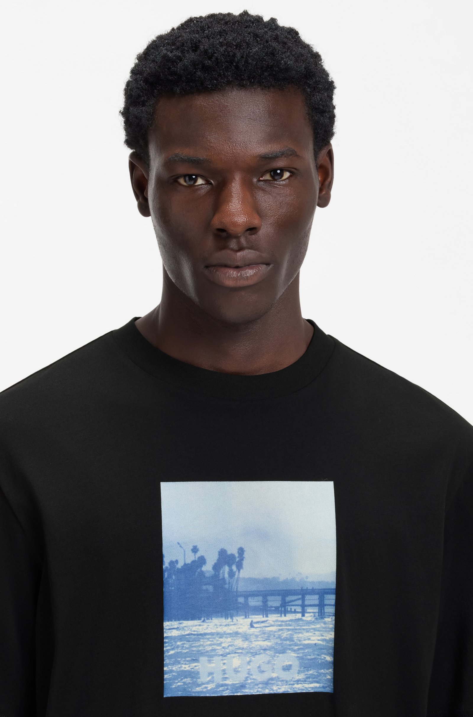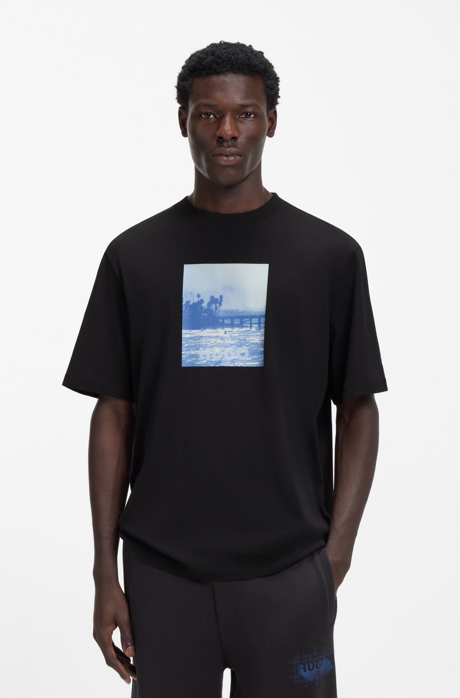 With its soft cotton and creative artwork, this HUGO Menswear T-shirt adds energy to casual looks. Cut to a straight fit. Regular fit Neckline: Crew neck Short sleeves Standard length 100% ... Sjá nánar