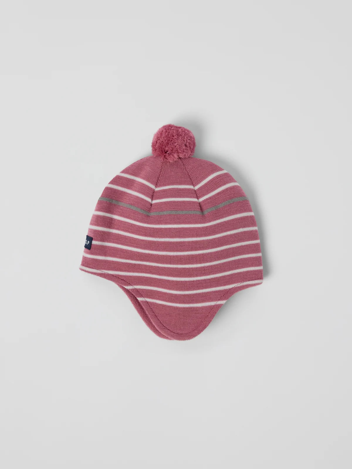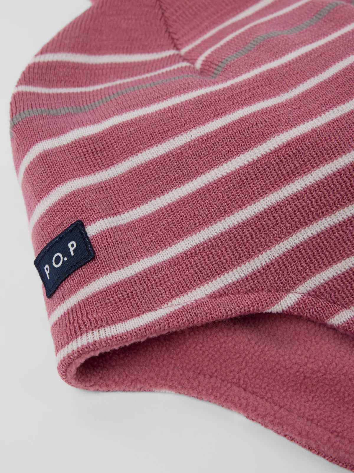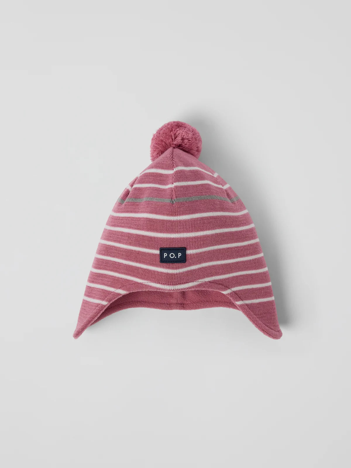 Windproof fleece lined hat in wool blend jacquard Windproof with soft lining and tie fastening Windproof helmet hat in a warm wool blend, with a lovely pom-pom. The hat is lined with soft ... Sjá nánar