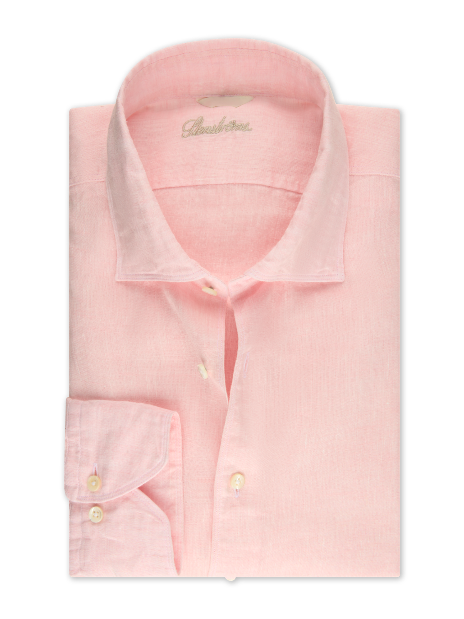 This shirt is made of linen and is detailed with mother of pearl buttons, single cuffs and a cut away collar. Moderate cut away collar, No.72 Single Cuff Linen Mother of Pearl Buttons Linen 100%