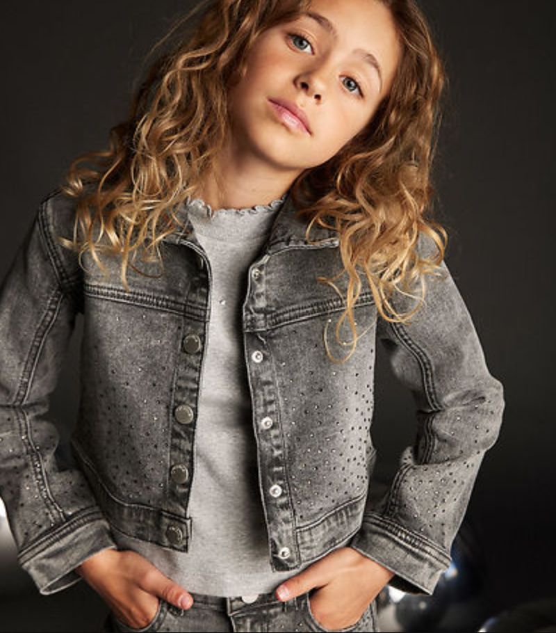 Grár langermabolur frá Creamie með glimmer steinum. 88% bómull, 9% polyester og 3% elastane.