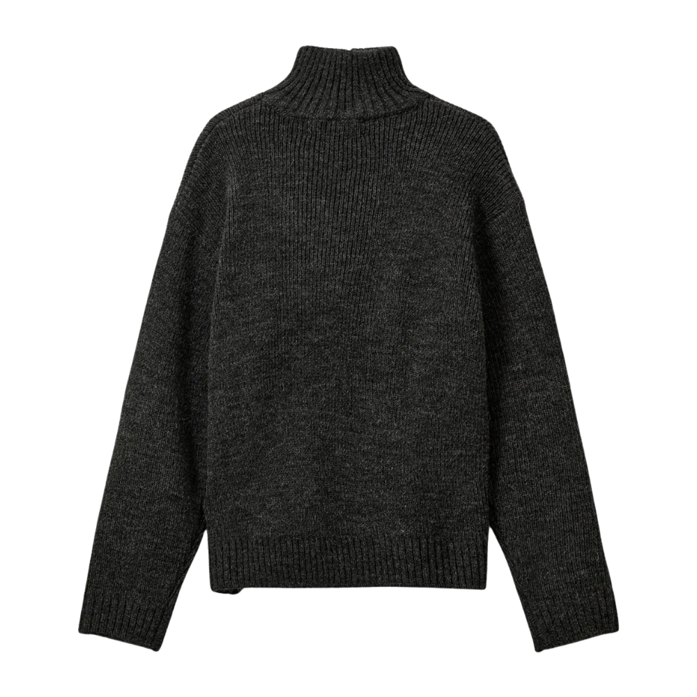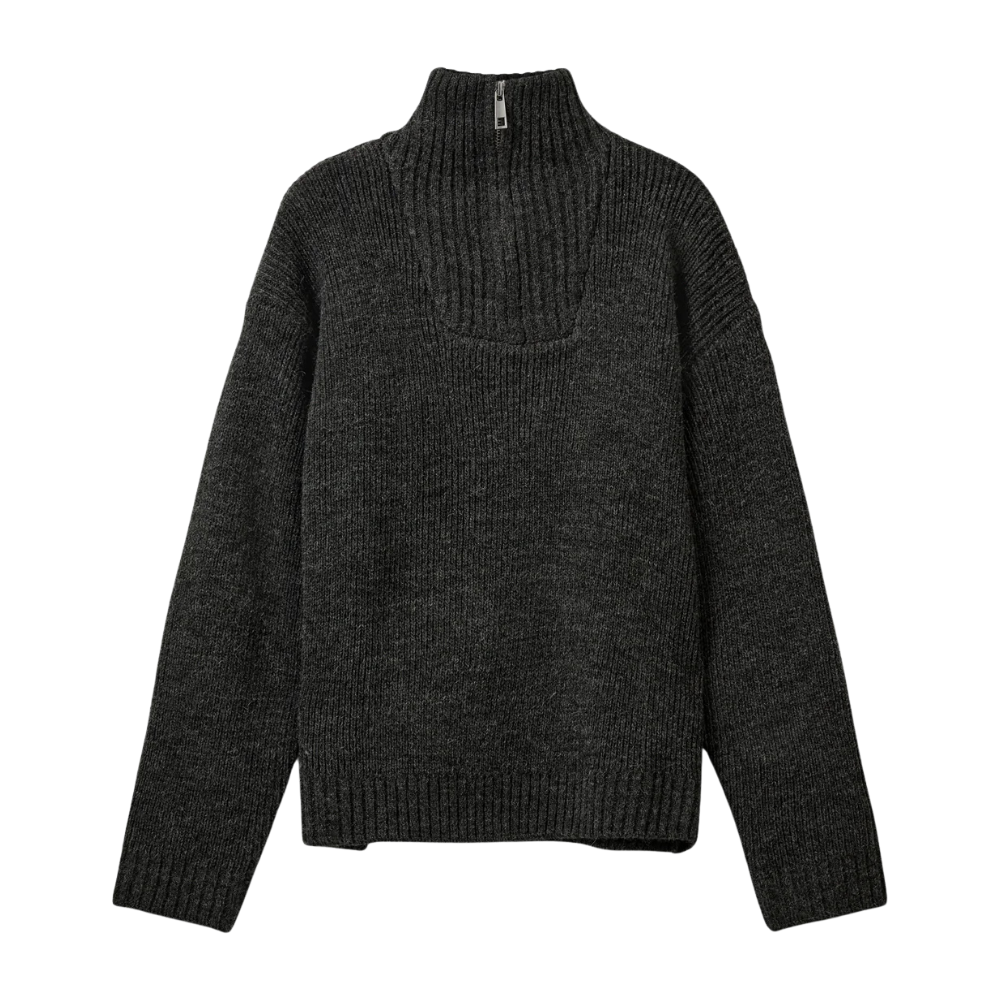 Dökk grá, hálf rennd prjónapeysa frá Sofie Schnoor. 58% acryl, 33% nylon og 9% ull.