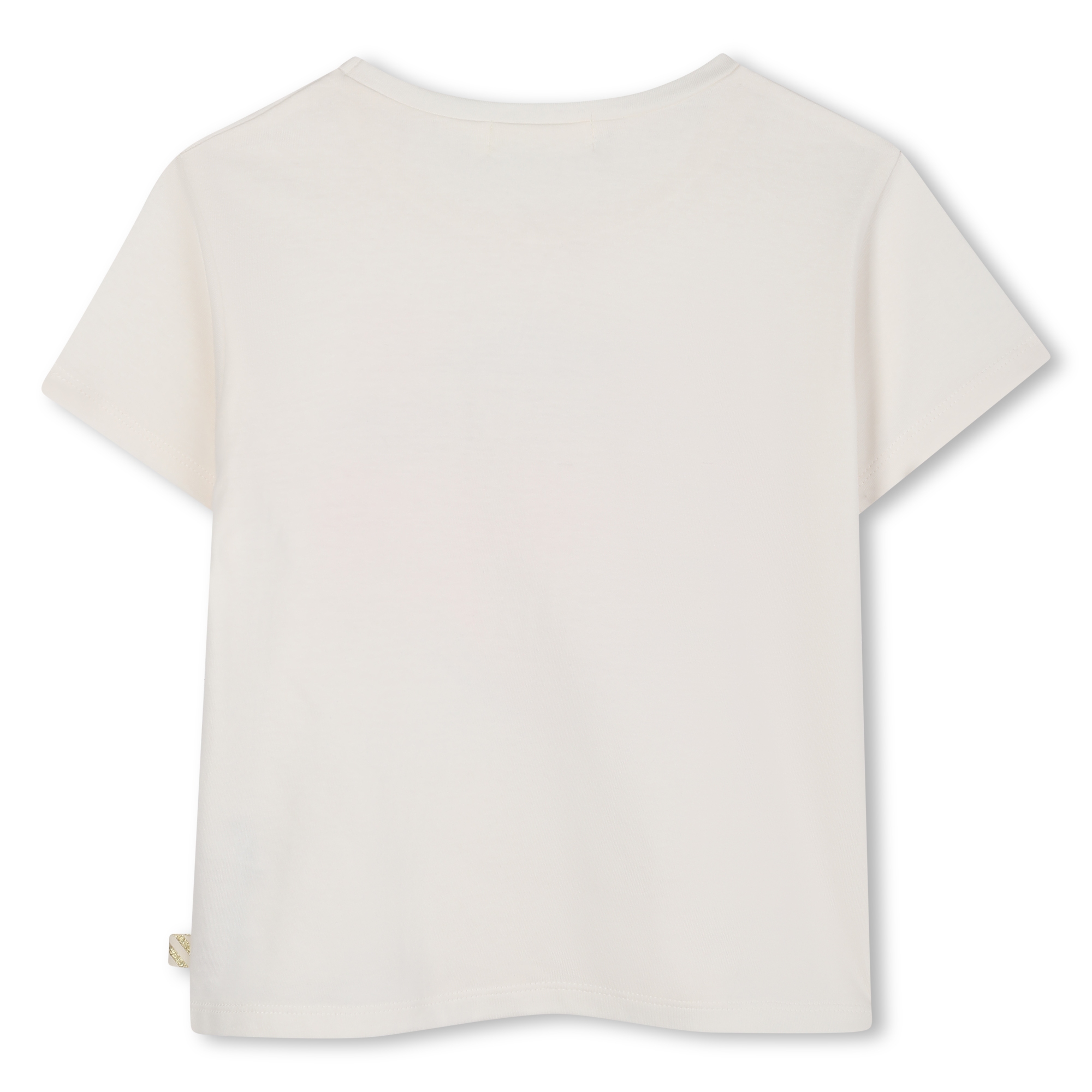 Ljós stuttermabolur frá Billieblush, skreyttur með glitrandi mynstrum og glansandi bleki. 100% bómull.