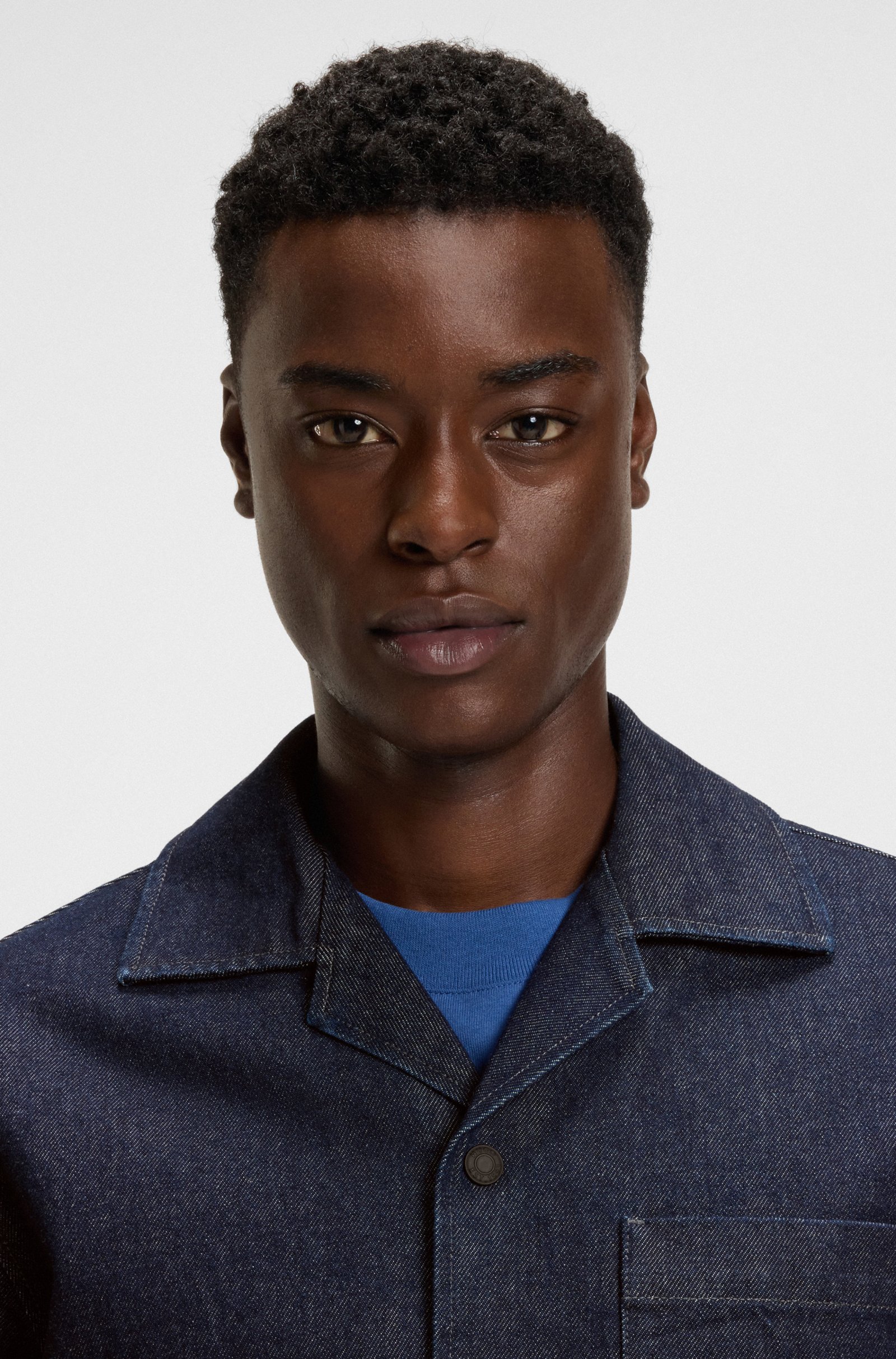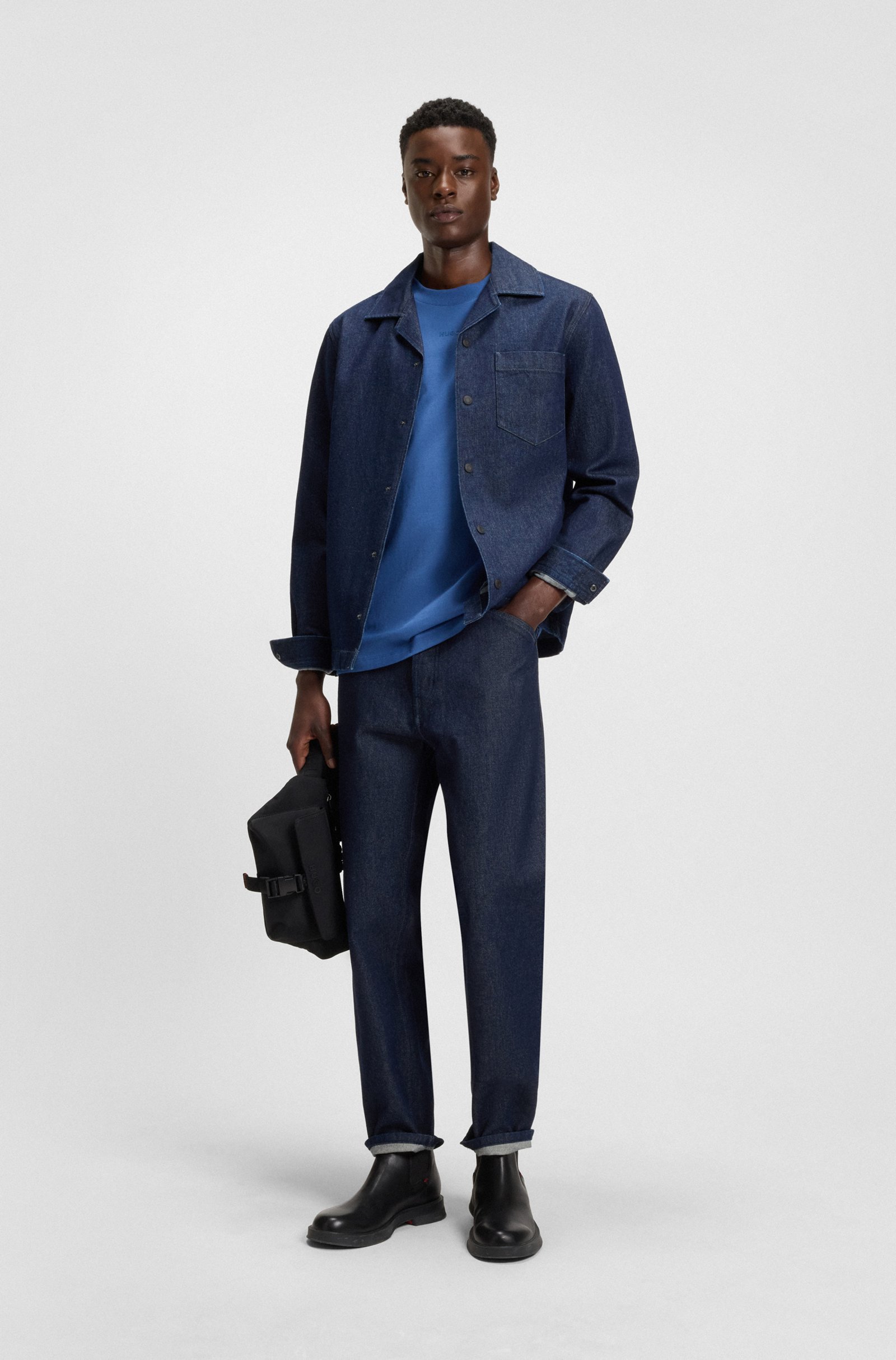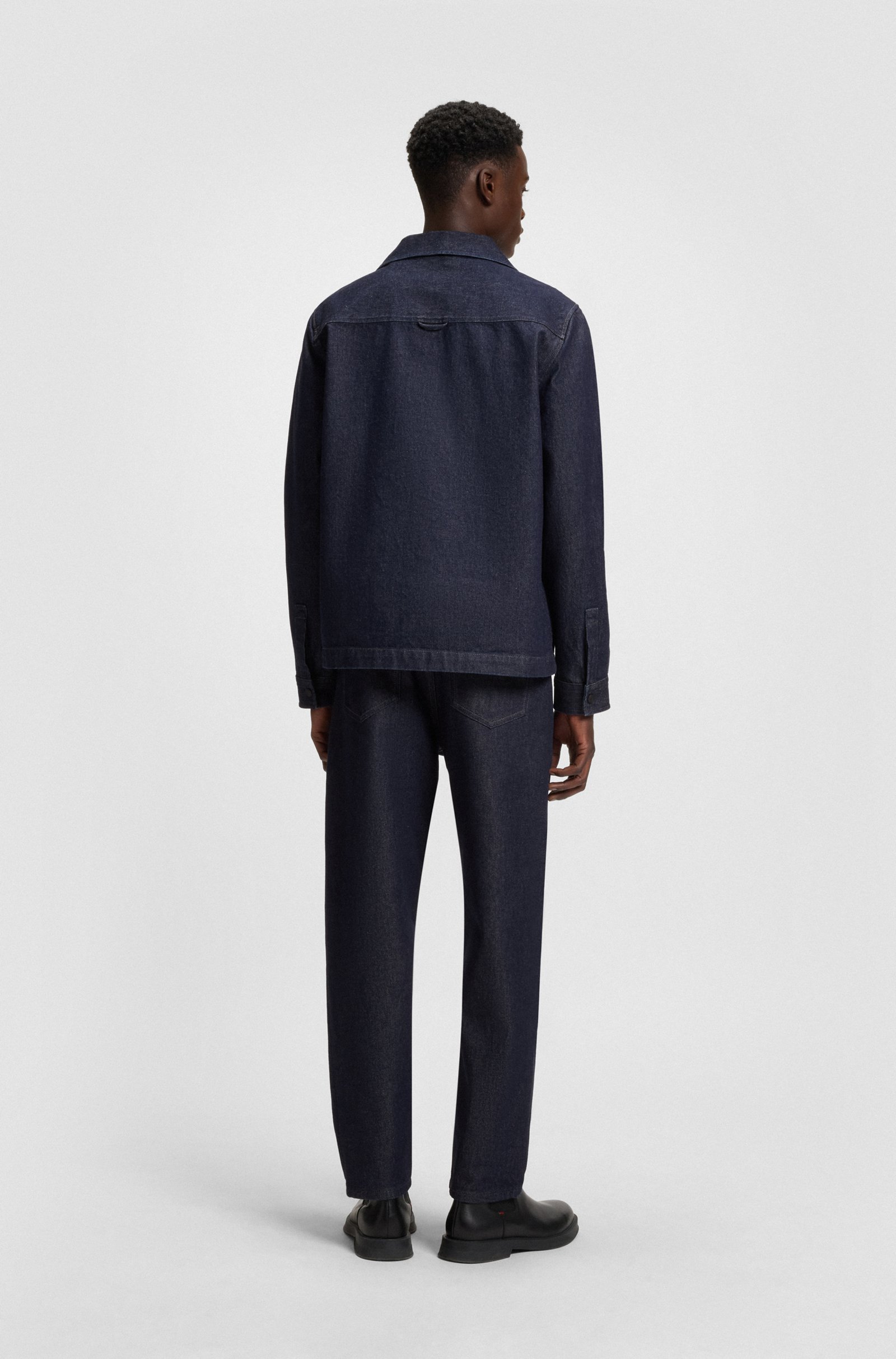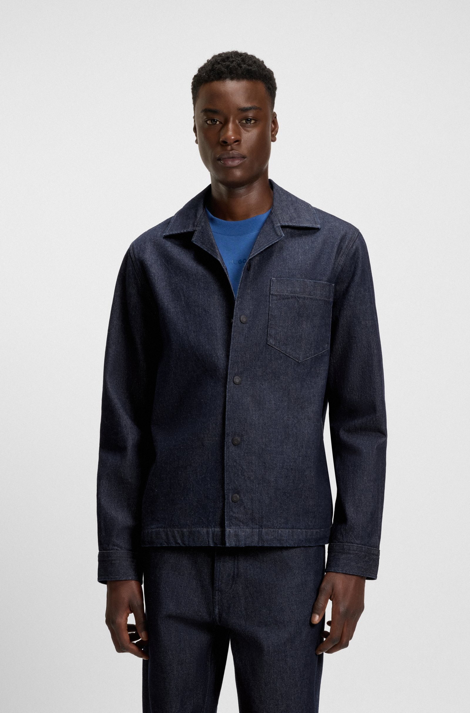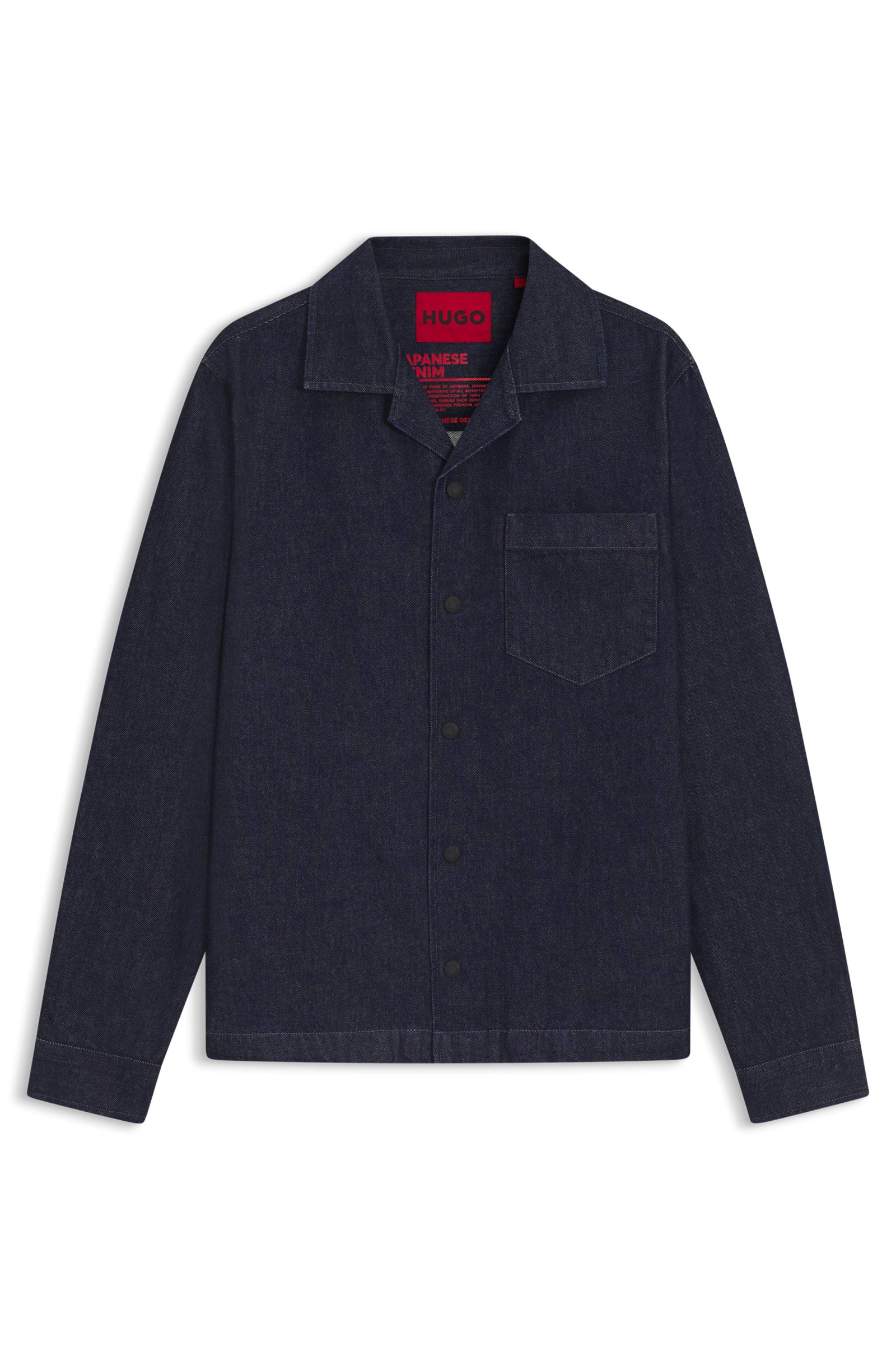 A timeless casual layering option, this HUGO Menswear overshirt is cut in weighty Japanese denim made from cotton. Special print inside. Oversize fit. Oversized fit Reverse lapels Barrel cuffs ... Sjá nánar