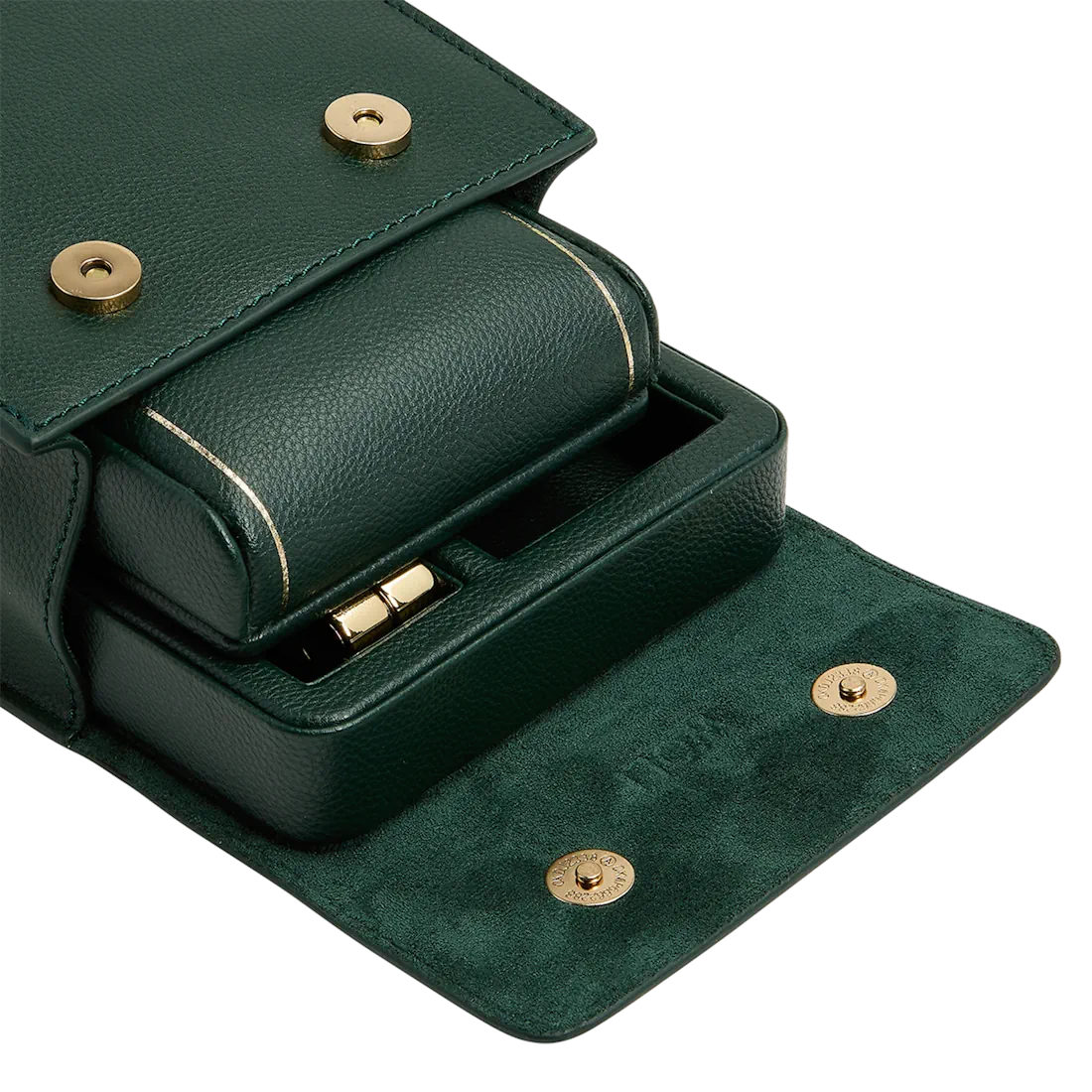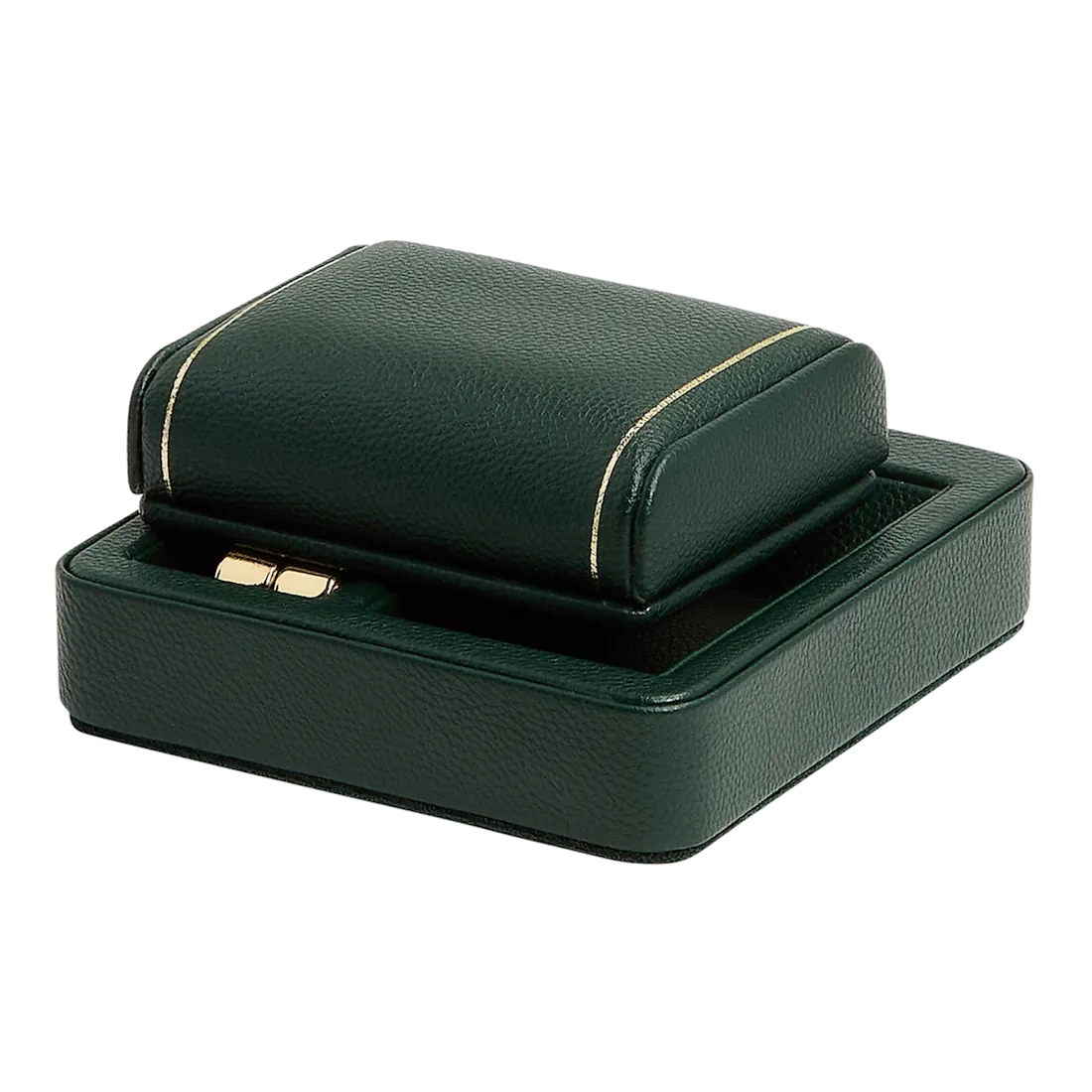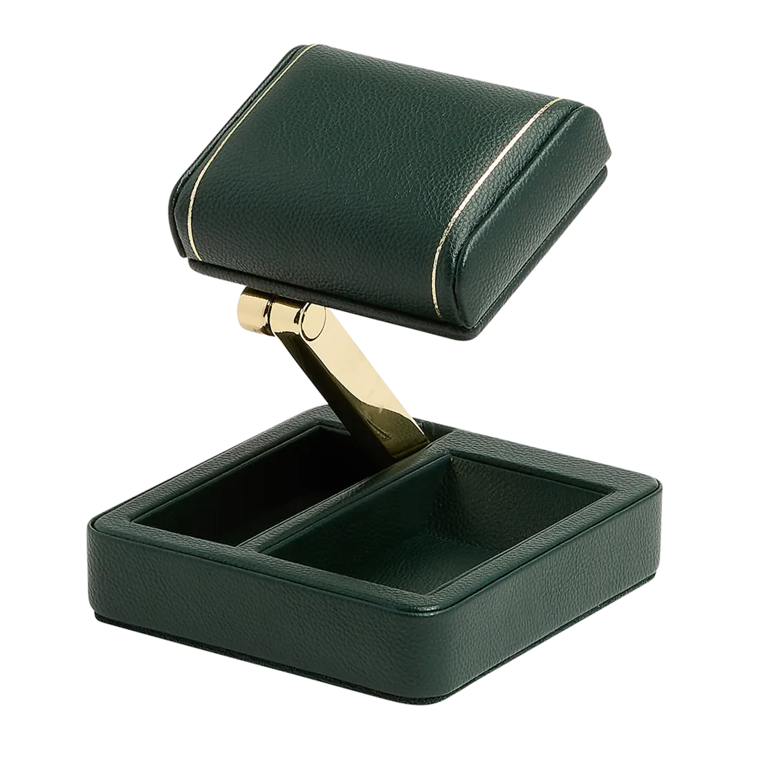 Stærð: 11.3cm x 11cm x 17.5cm Efni: Veganleður 1 standur fyrir úr. 2 hólf fyrir skartgripi.