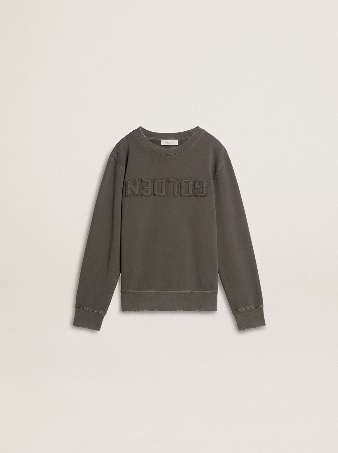 Græn peysa frá Golden Goose með stóru logo að framan. Stroff við ermar og mitti. 100% bómull.