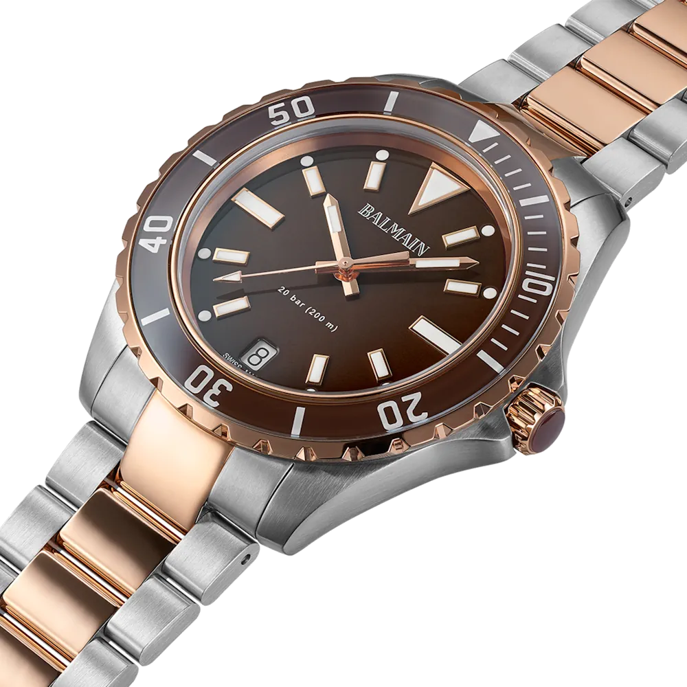 Úrkassi: 42,5mm – stál & rauðagyllt stál Úrverk: Rafhlaða – svissneskt Vatnsvörn: 200M Skífa: Brún – áfest strik – dagsetning hjá kl 6 – vísar Gler: Safírgler – speglunarvörn Keðja: Stál & ... Sjá nánar