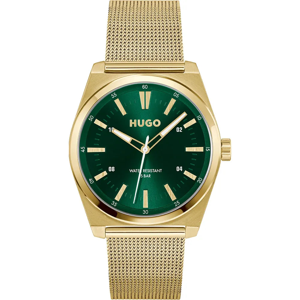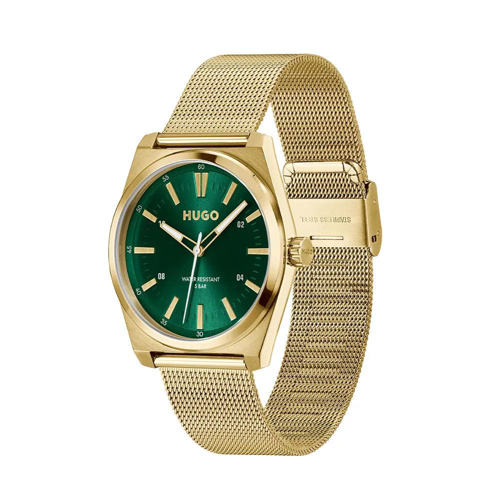 Hugo Boss Ark Vörunr:1530441 Gangverk:Rafhlaða/Quartz   Stærð:40mm Úrkassi:Gyllt Stál Keðja/ól:Gyllt Stál  Skífa:Græn Gler:Hert gler  Vatnsvörn:50m Dagatal:Nei  Eiginleikar: Ábyrgð: Tveggja ára