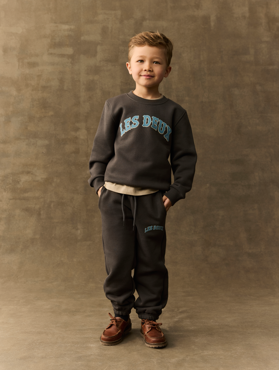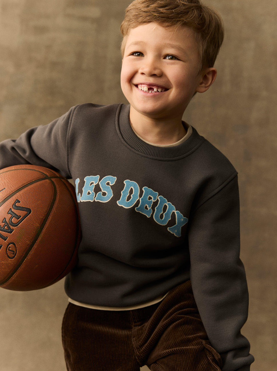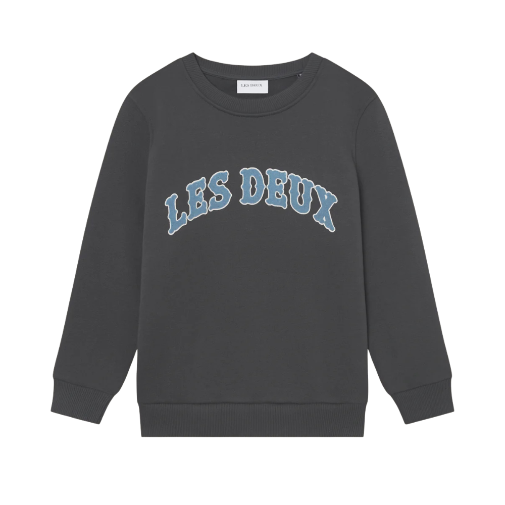 Dökk grá peysa frá Les Deux með stóru logo að framan. 100% bómull.