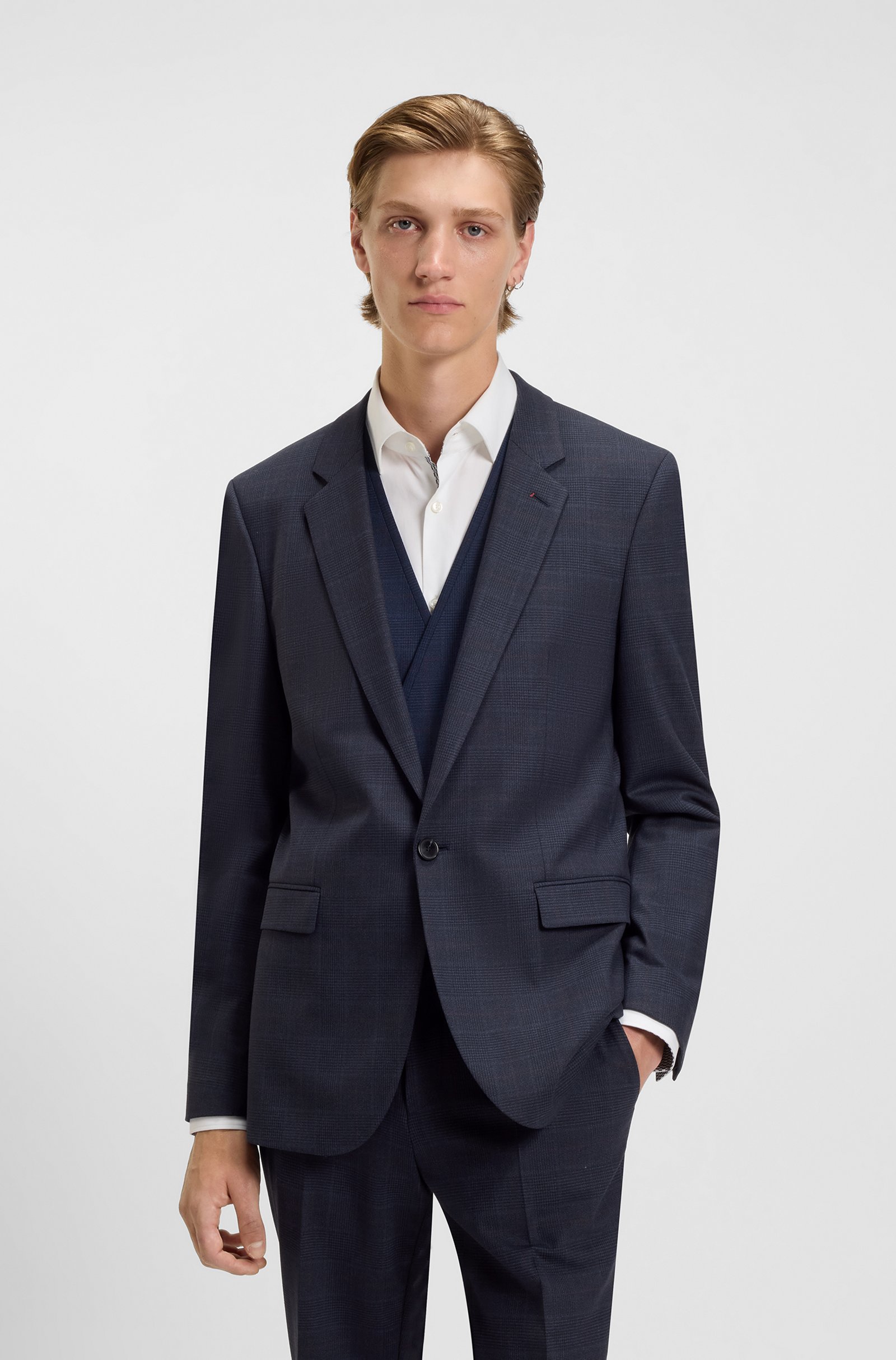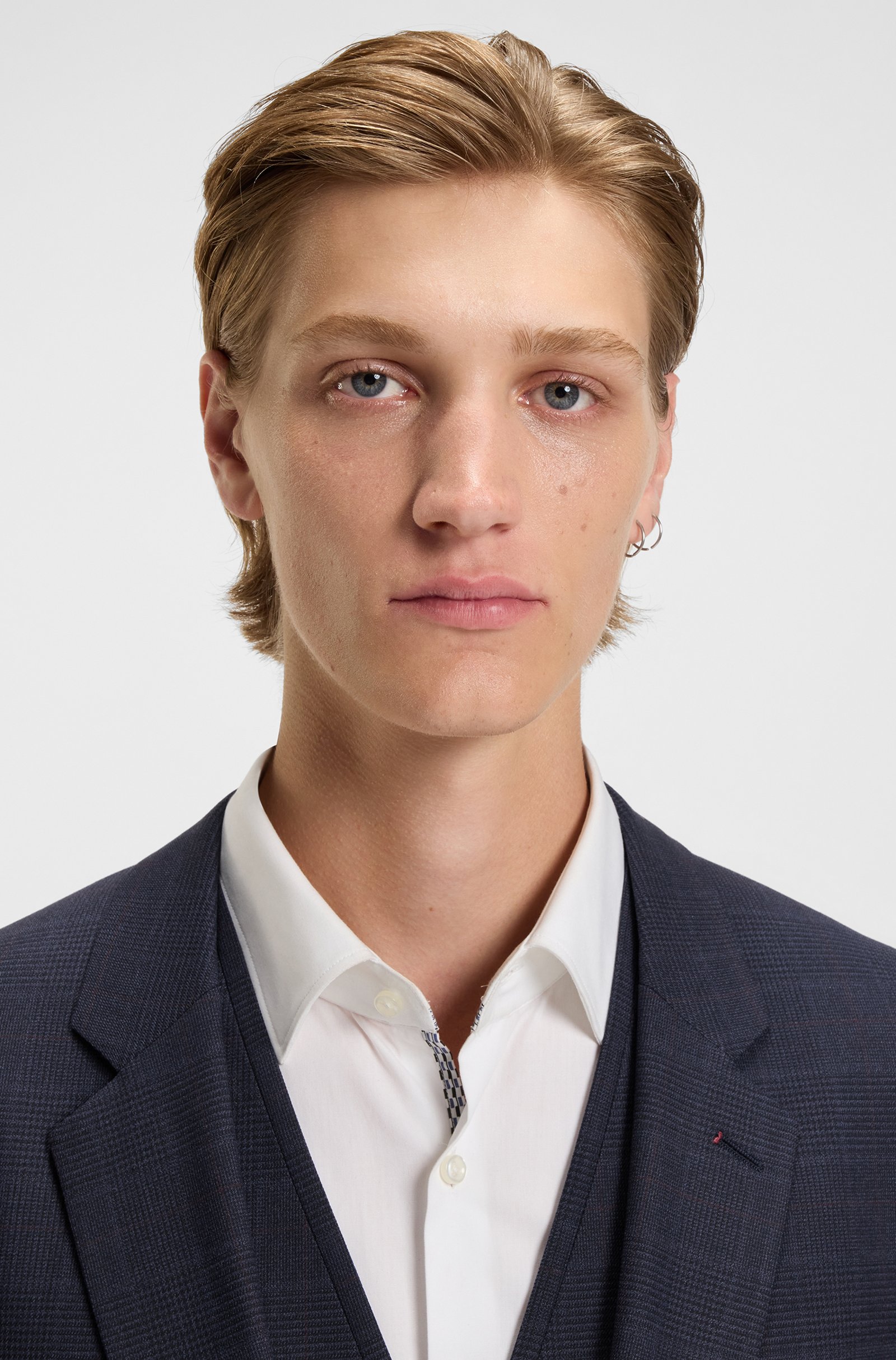 Ideal for any formal occasion, this three-piece HUGO Menswear suit features a heritage check on stretch fabric. Super-slim fit. Blended with soft wool. Extra-slim fit Notched lapels Fastening ... Sjá nánar
