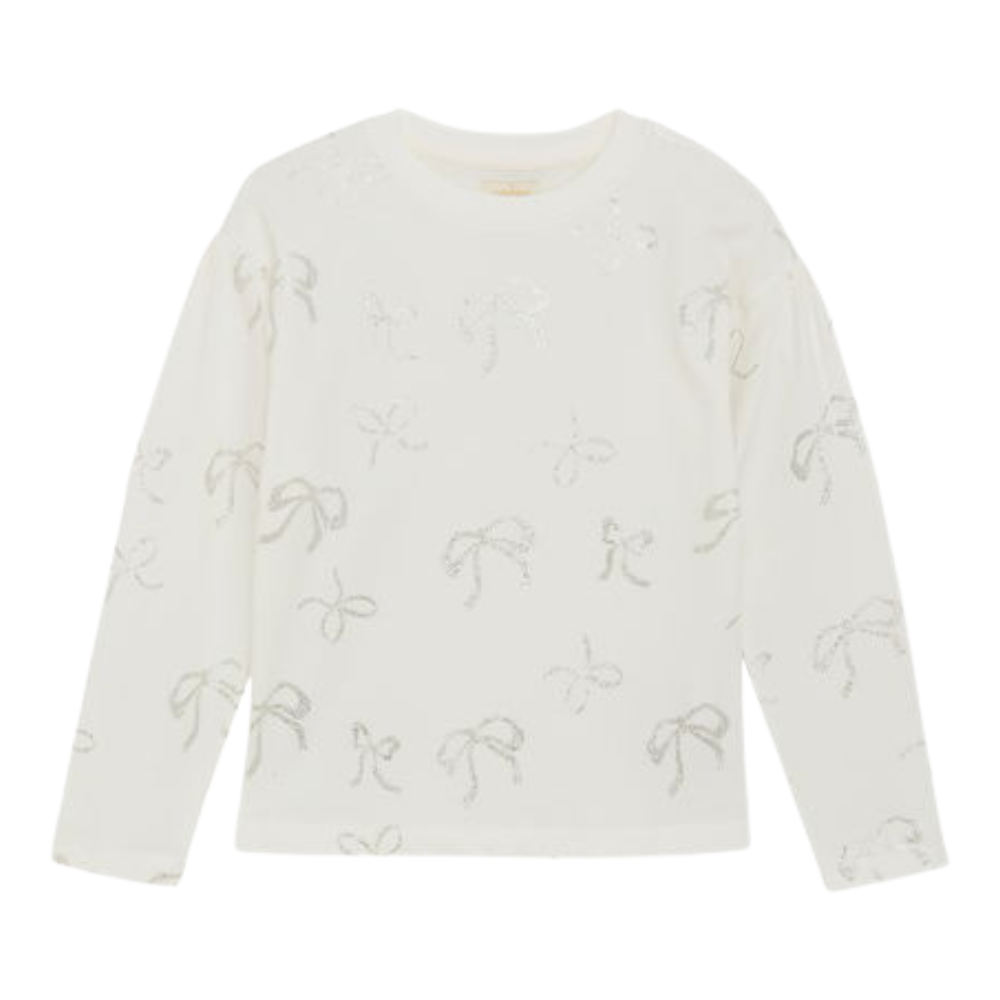 Ljós langermabolur frá Creamie með silfruðu glimmer mynstri. 100% bómull.