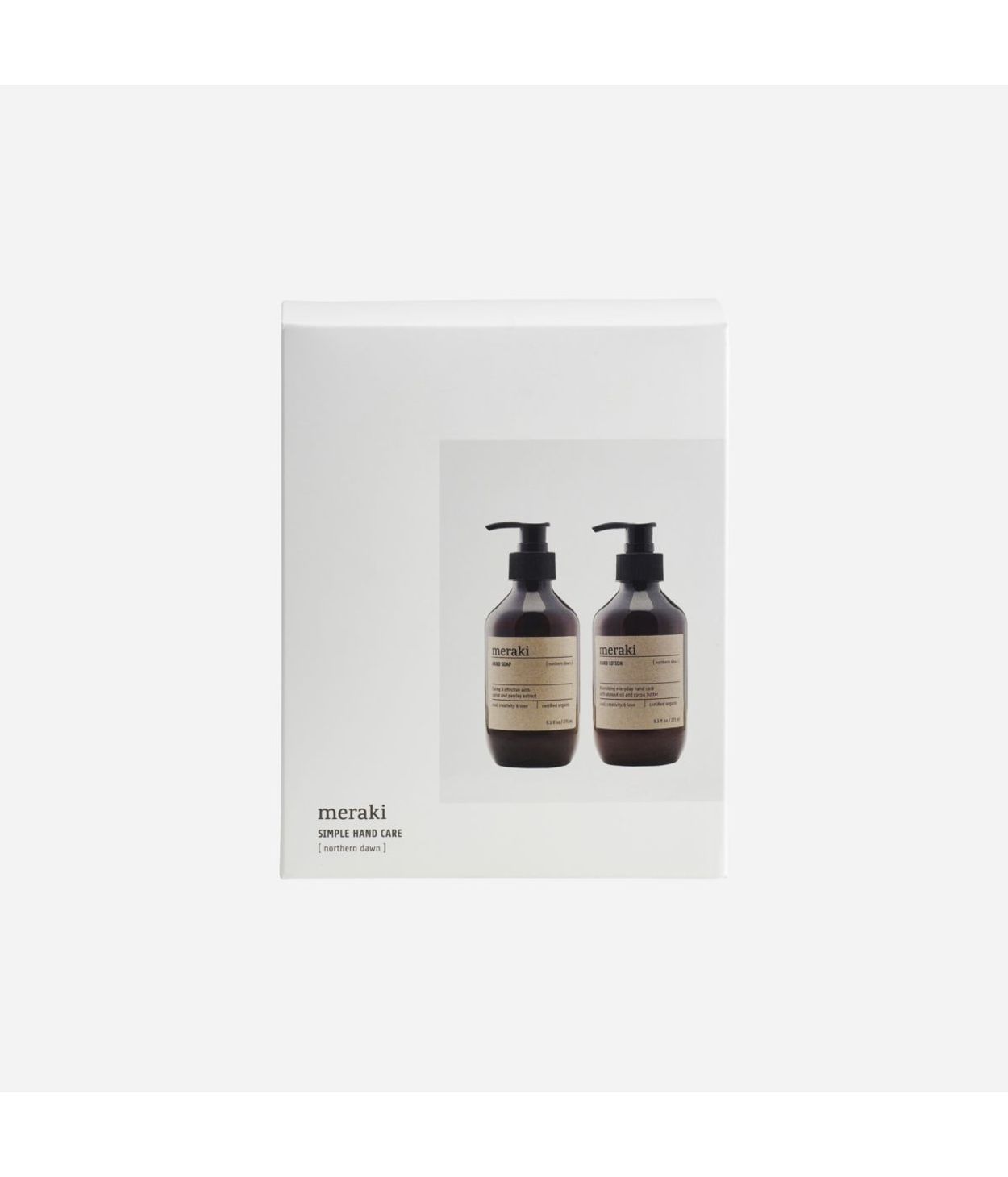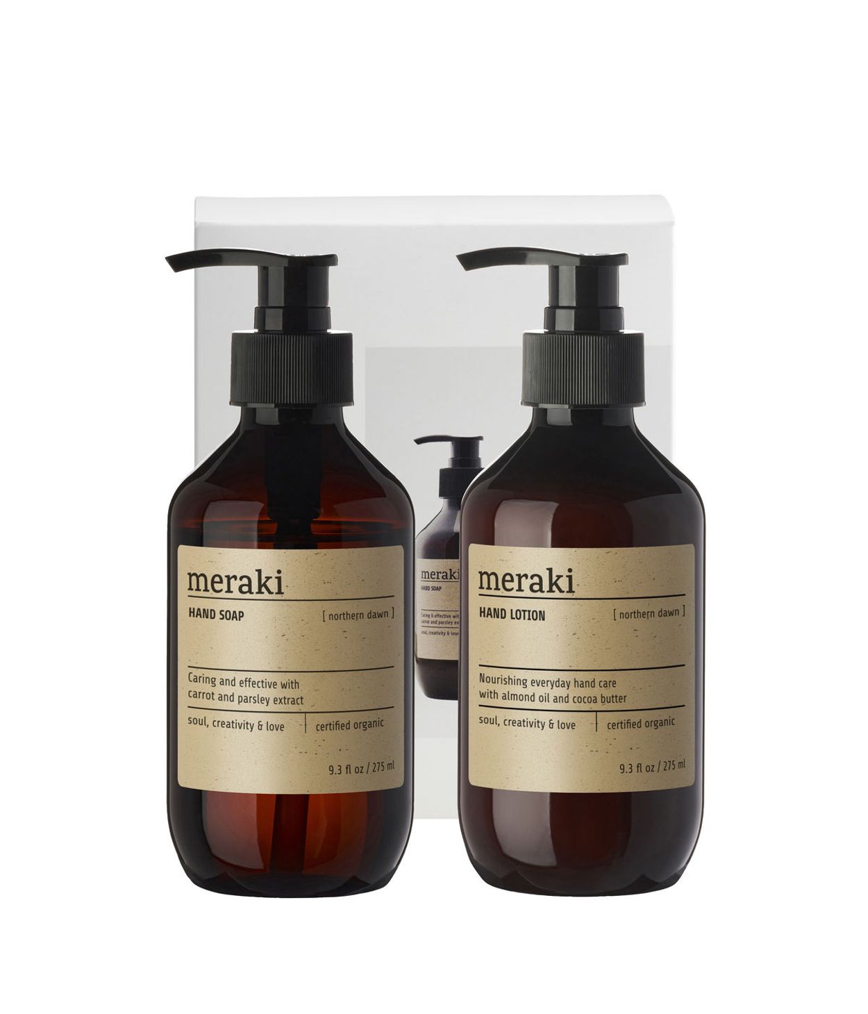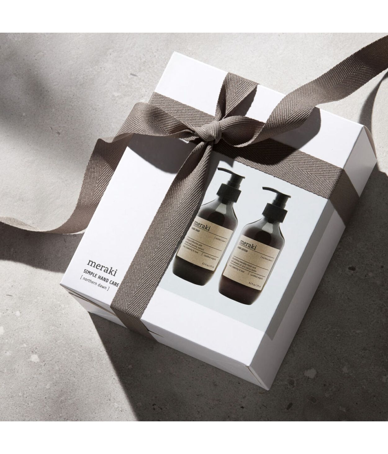 Falleg gjafaaskja með handsápu og handáburð frá Meraki.