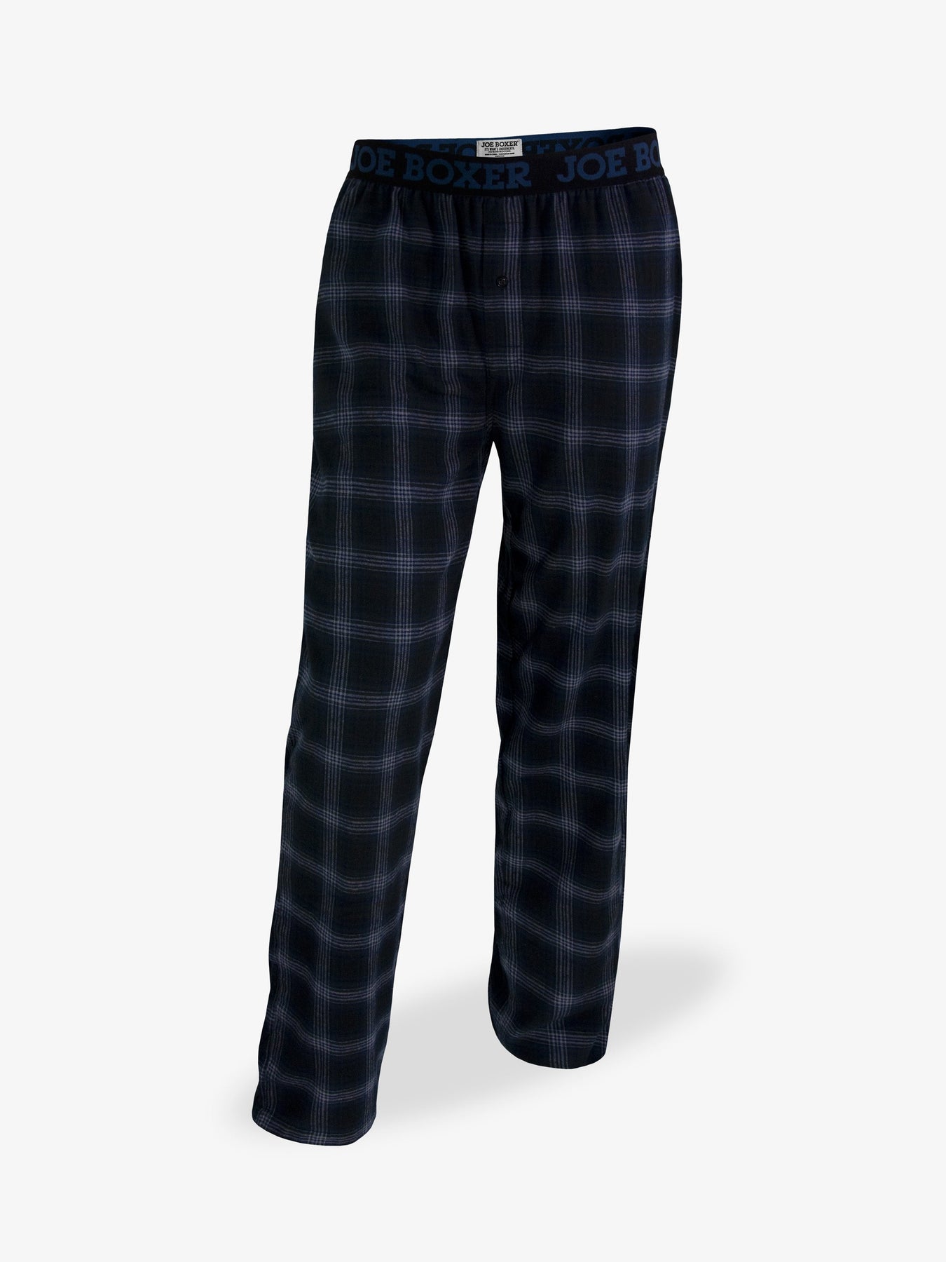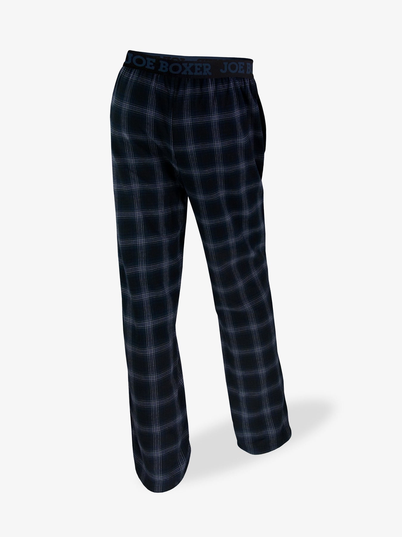 Köflóttar náttbuxur úr flannel í unisex sniði með lógóteygju. Klassíska sniðið með vösum í hliðum. 100% bómull.
